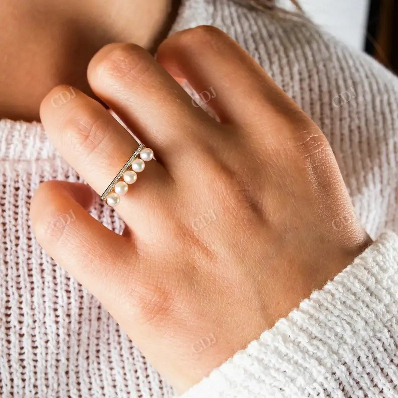 0.05CTW Genuine Diamond and Pearl Bar Ring