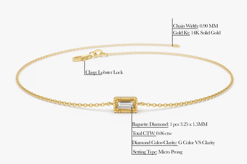 Tags: 0.06CTWBaguette CutBraceletMinimalistMoissanite