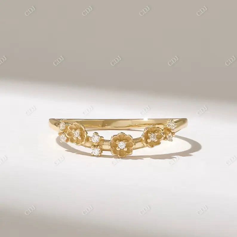 0.06CTW Round Cut Lab Grown Flower Curved Ring