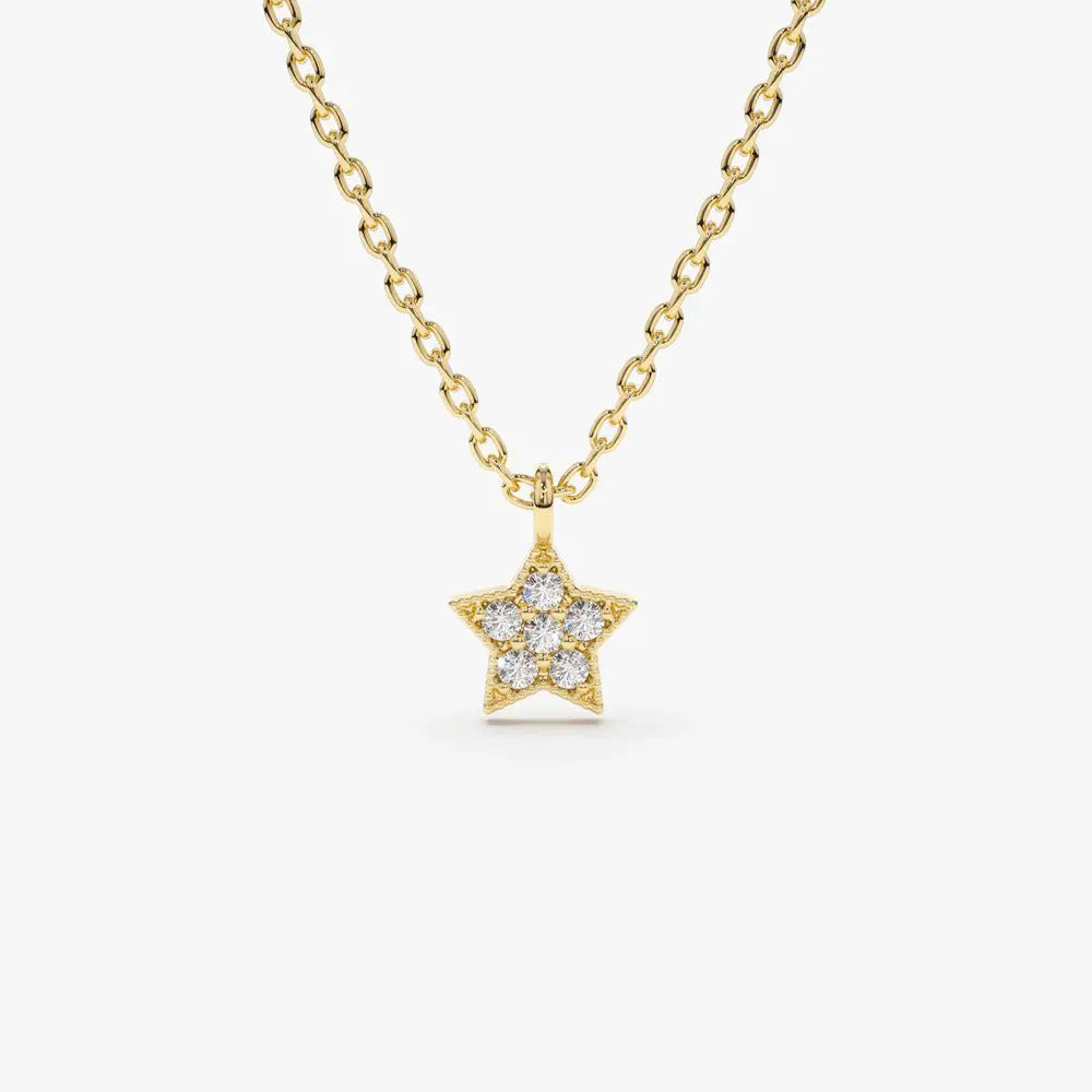Tags: 0.06CTW14k gold star necklacediamond necklacejewelrystar charmstar diamond necklace