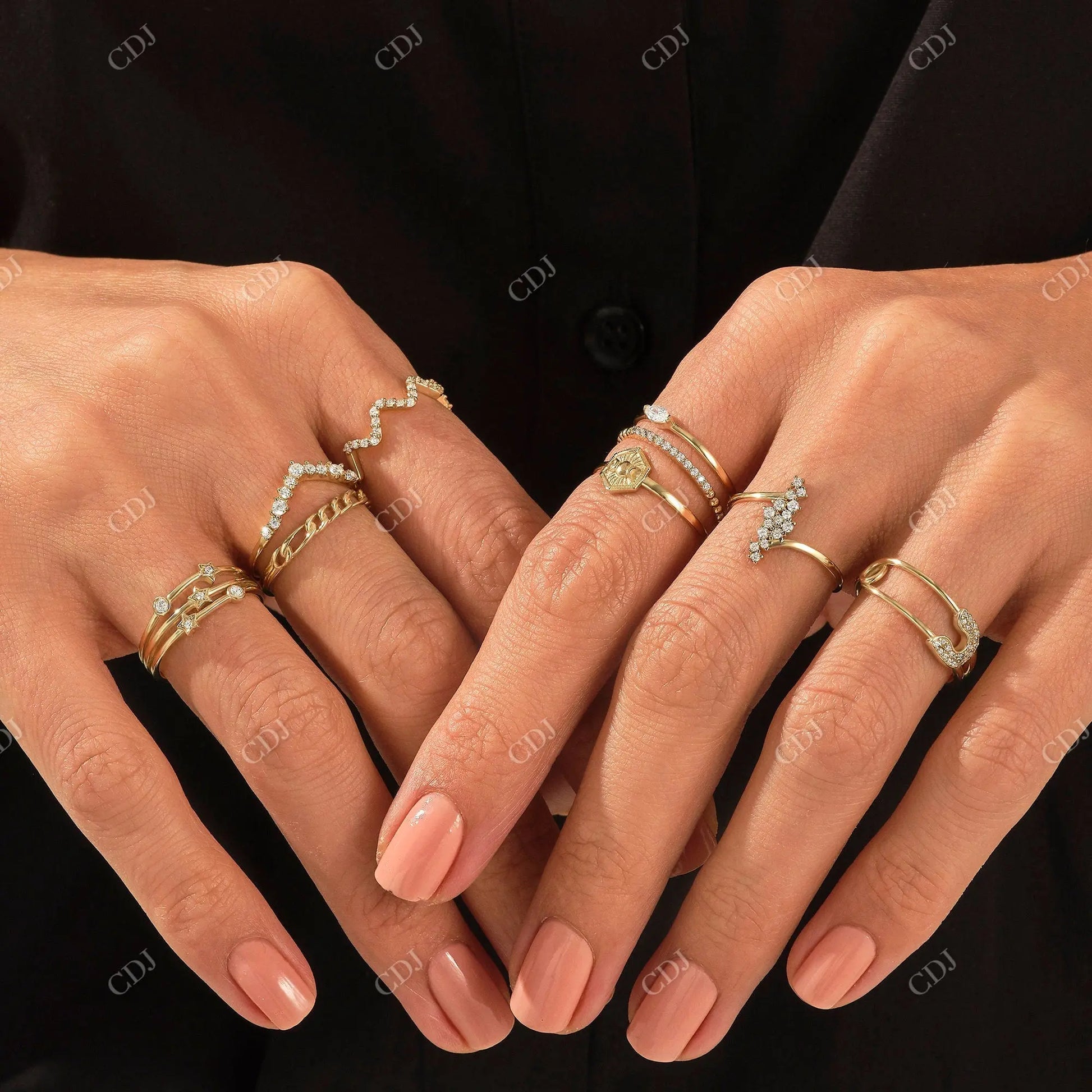 Fuse bold style with refined sparkle in the 0.08CTW Round Lab Grown Diamond Pave Safety Pin Ring—a unique piece that blends iconic punk-inspired design with ethical luxury. This ring turns a classic safety pin shape into a dazzling statement, perfect for trendsetters who love edgy yet elegant jewelry.