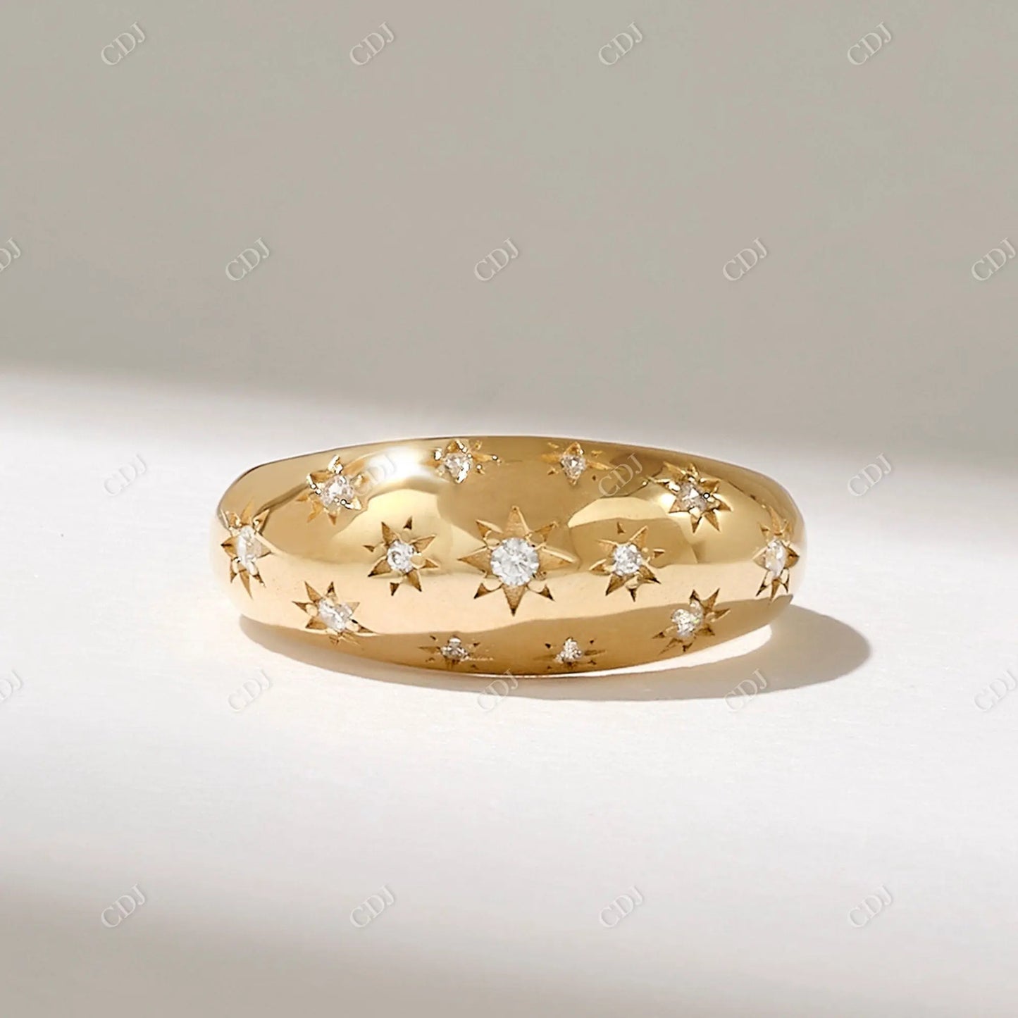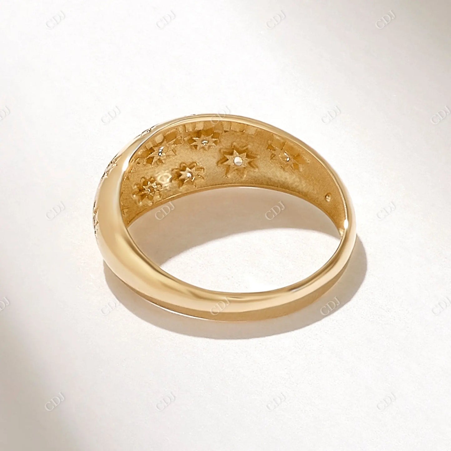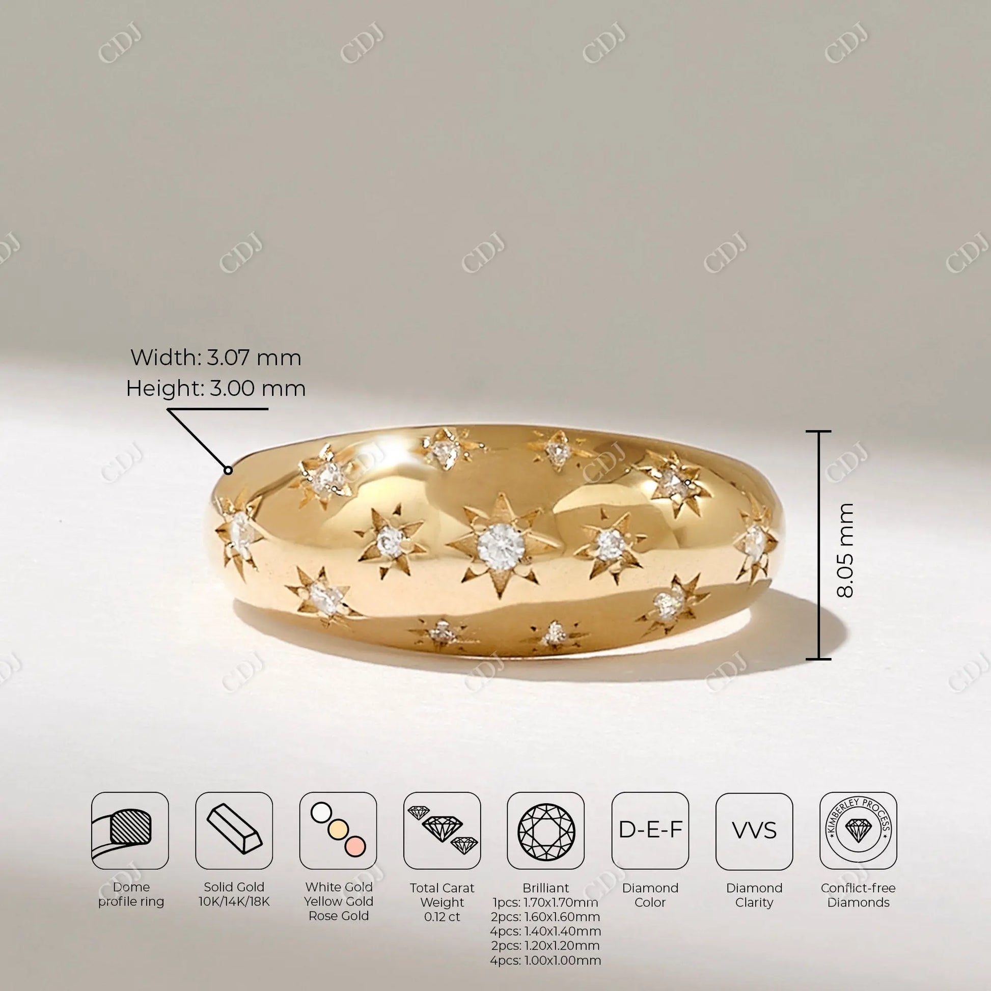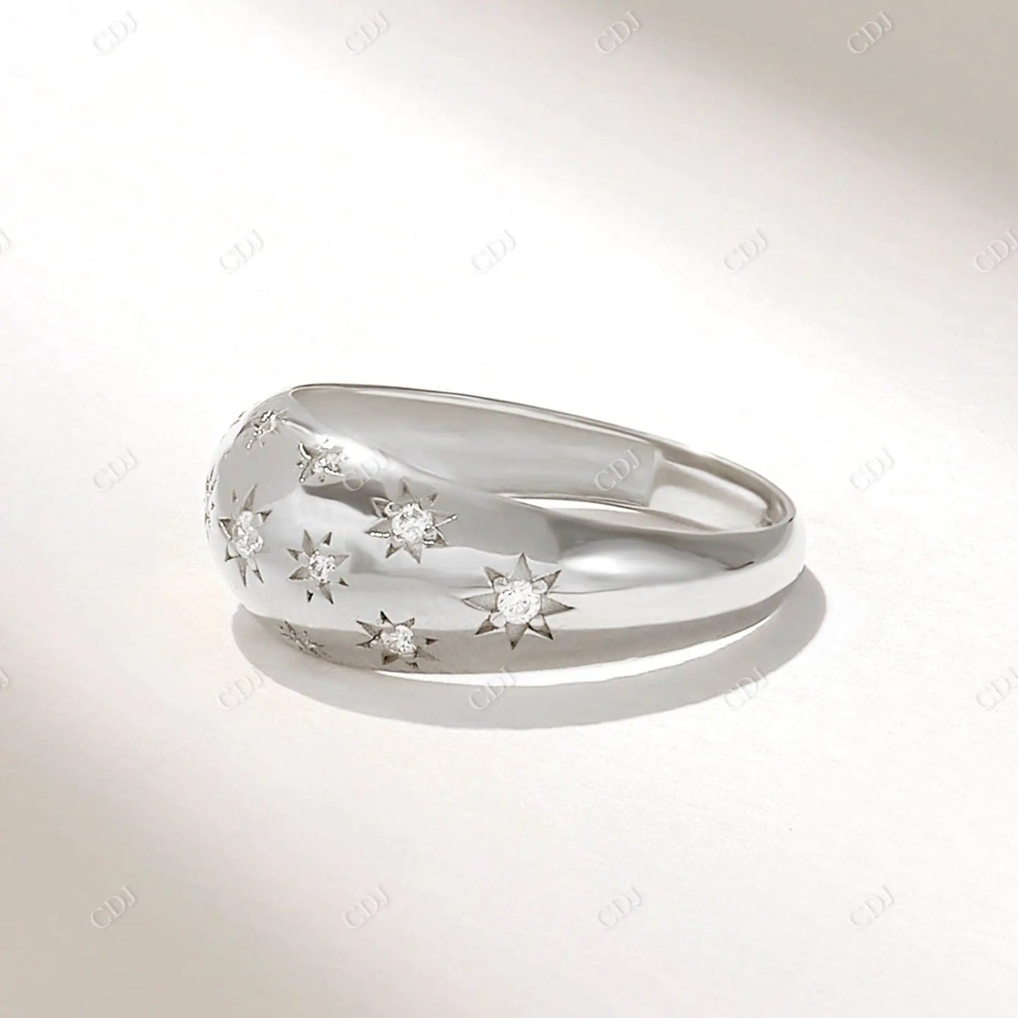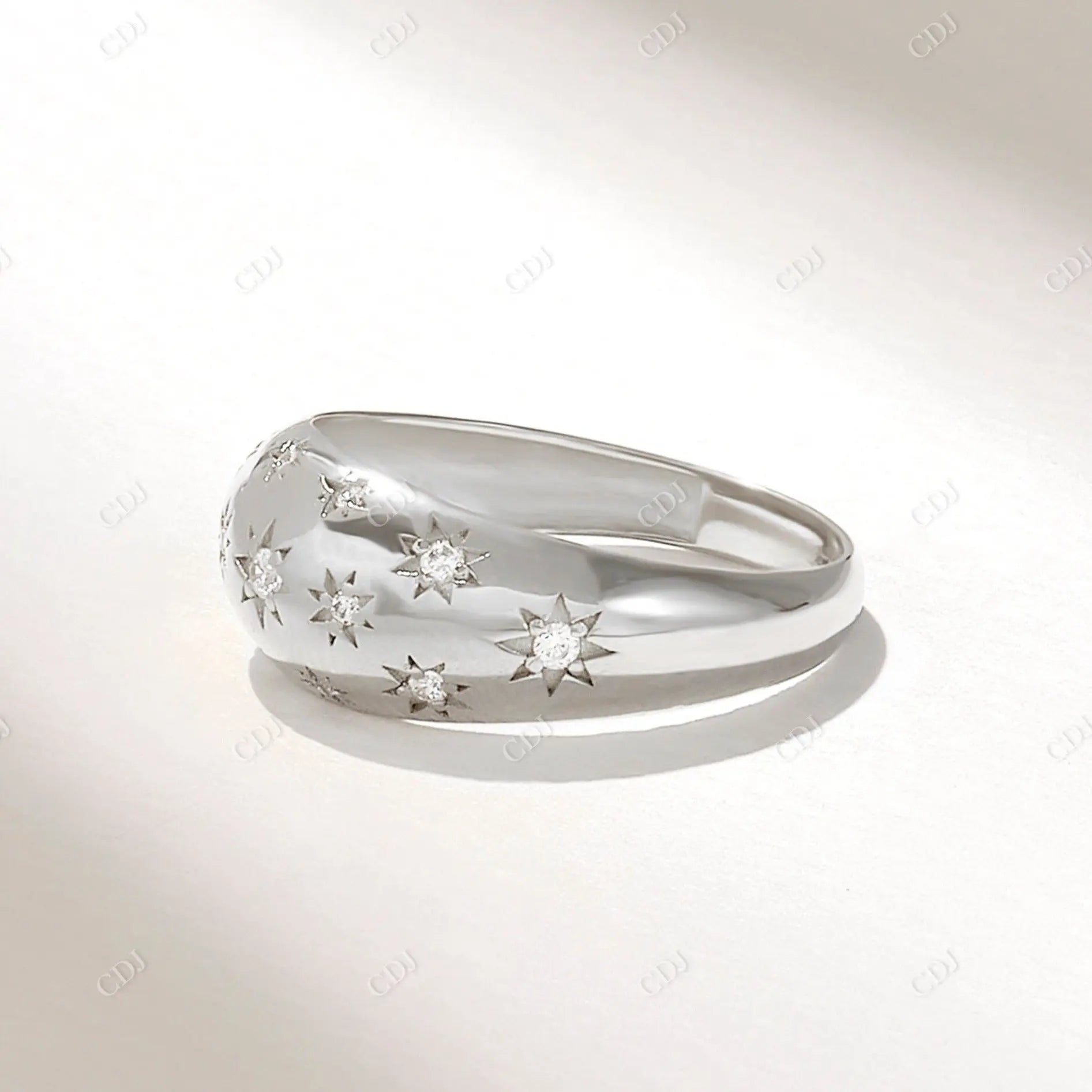 Crafted with lab grown round cut diamonds, this star dome ring features delicately placed stones that resemble twinkling stars across a polished dome-shaped band. It captures the magic of the night sky in a contemporary, wearable form.