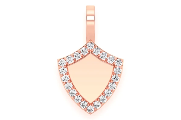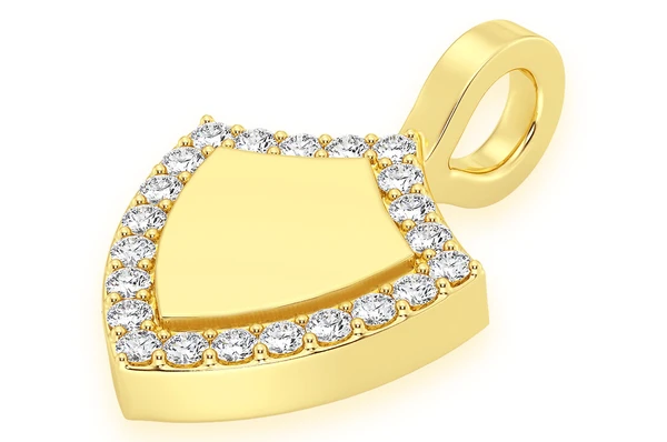 Add a touch of sophistication and style to your look with our exquisite 0.20CTW Engraveable Shield Diamond Pendant. This stunning pendant features a shield-shaped design that is perfect for engraving a personalized message or initials.