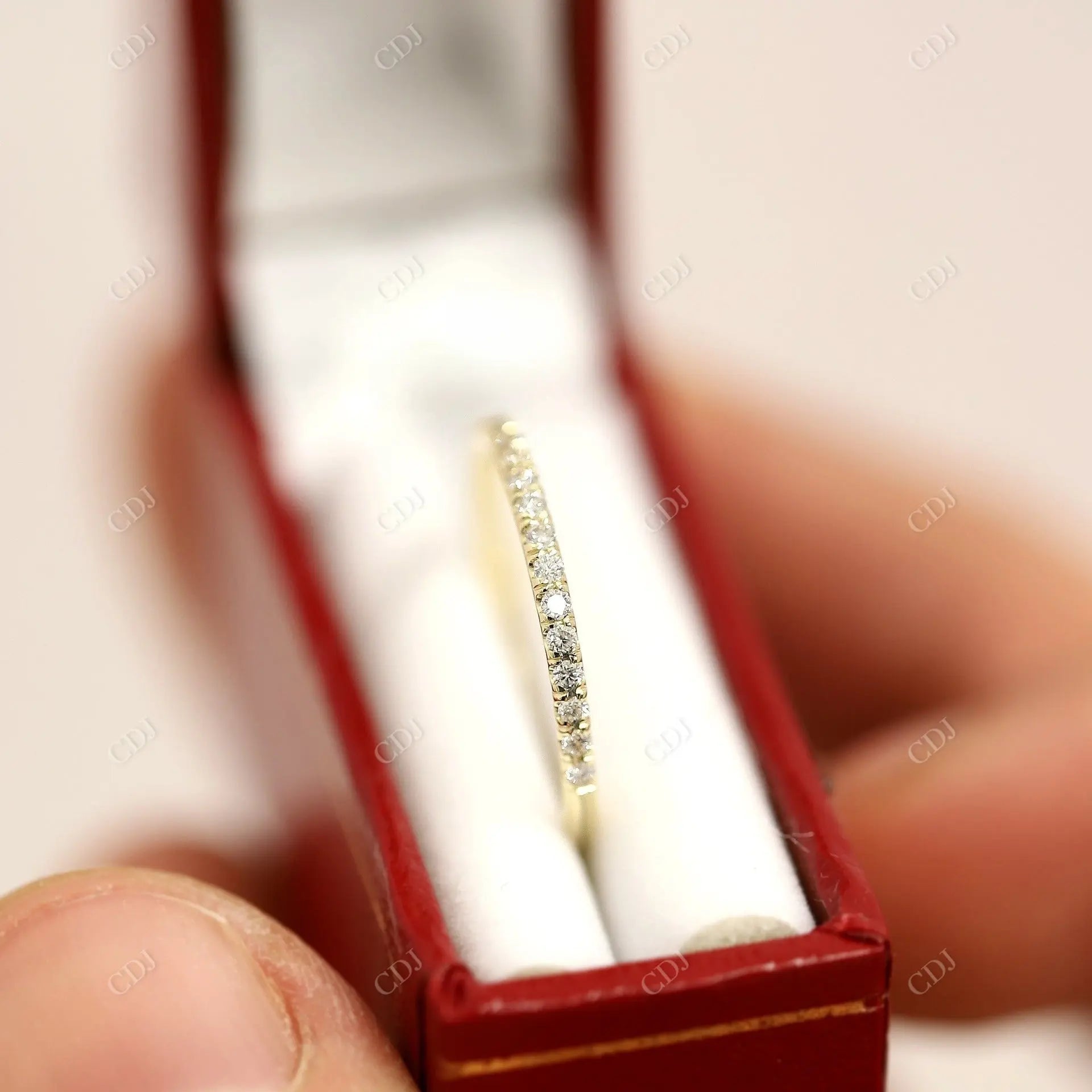 The 0.20CTW Round Half Eternity Yellow Gold Moissanite Wedding Band is crafted with care, offering durability for daily wear and timeless design that complements any engagement ring.