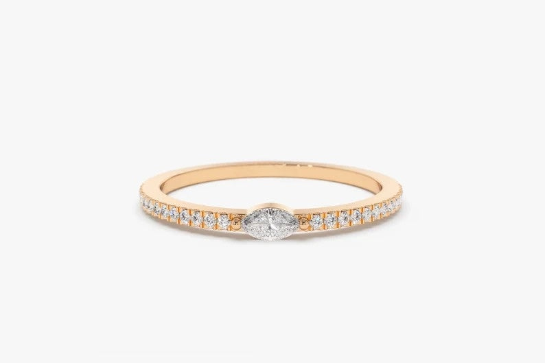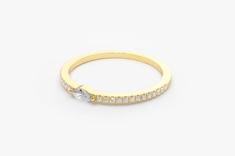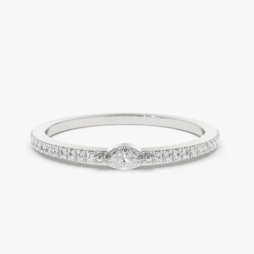 Elevate your bridal stack with the elegant shimmer of the 0.21CTW Marquise And Round Diamond Micro Pave Wedding Band. This refined band blends the graceful curves of marquise-cut diamonds with the classic brilliance of round stones, all set in a precise micro pavé style that offers delicate sparkle from every angle.