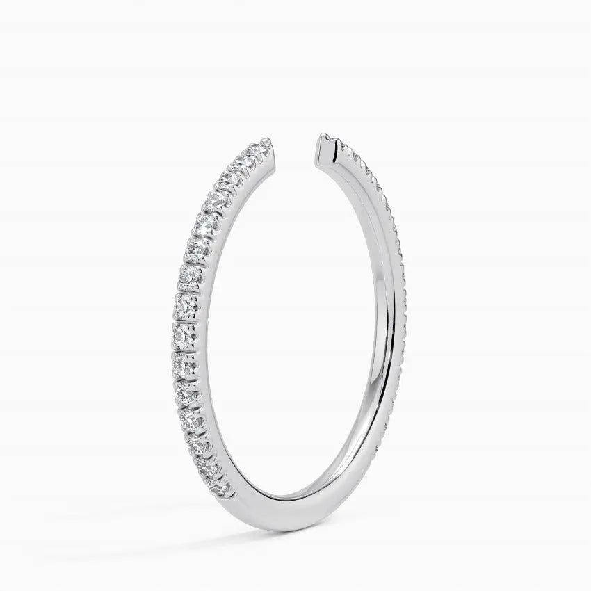 Traditional eternity bands are beautiful, but the open design of this wedding band brings lightness, flexibility, and a subtle contemporary feel. Its elegant diamond accents—expertly placed to offer continuous shimmer—make it ideal for daily wear, anniversary gifts, or bridal stacks.
