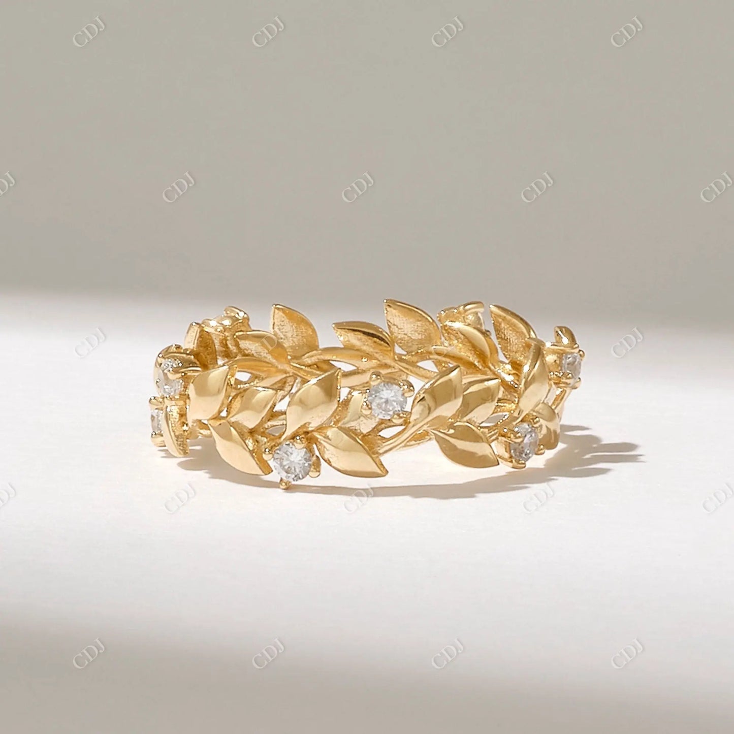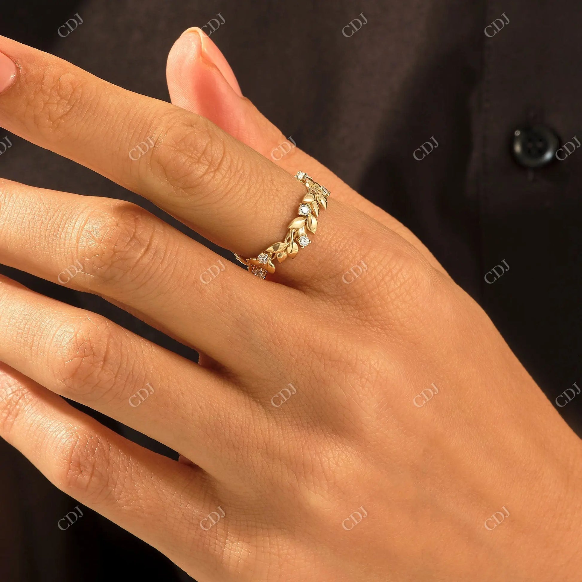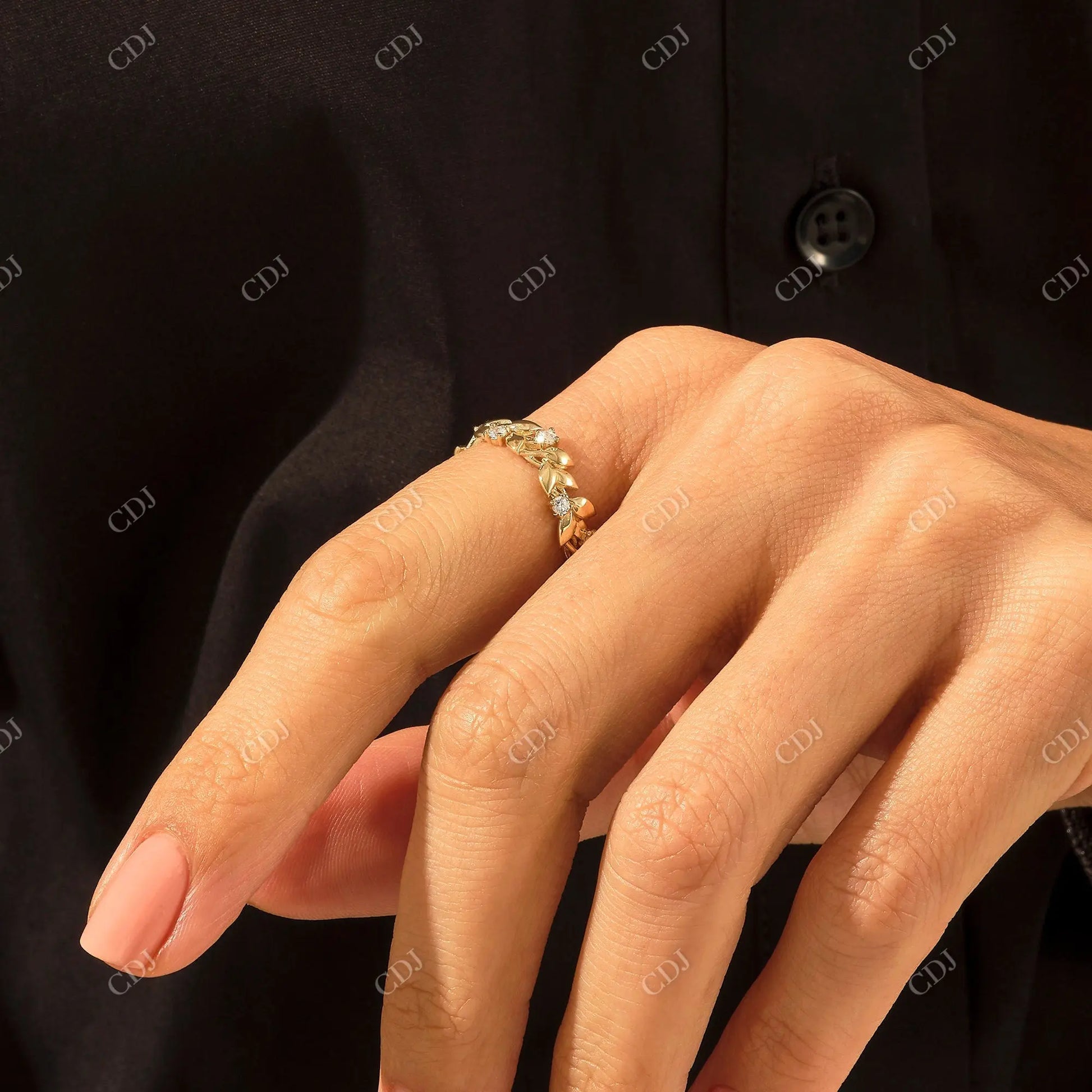 0.22CTW Round Cut CVD Diamond Pave Leaf Ring