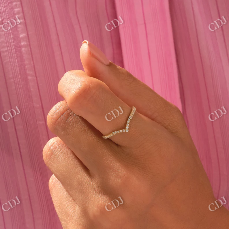 Elevate your wedding band collection with this 0.25CTW Lab Grown Round Cut Diamond Twisted Pave Chevron Wedding Band. Designed with a modern twist, this elegant band features sparkling lab-grown round cut diamonds meticulously pave-set along a graceful chevron shape. The unique twisted design adds a contemporary flair while maintaining timeless sophistication.