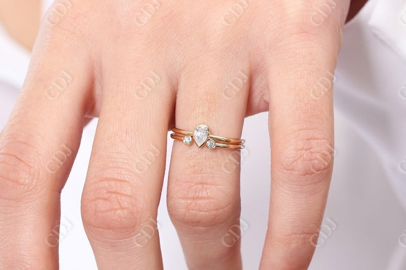 0.31CTW Pear Cut Natural Diamond Bezel Set Antique Engagement Ring