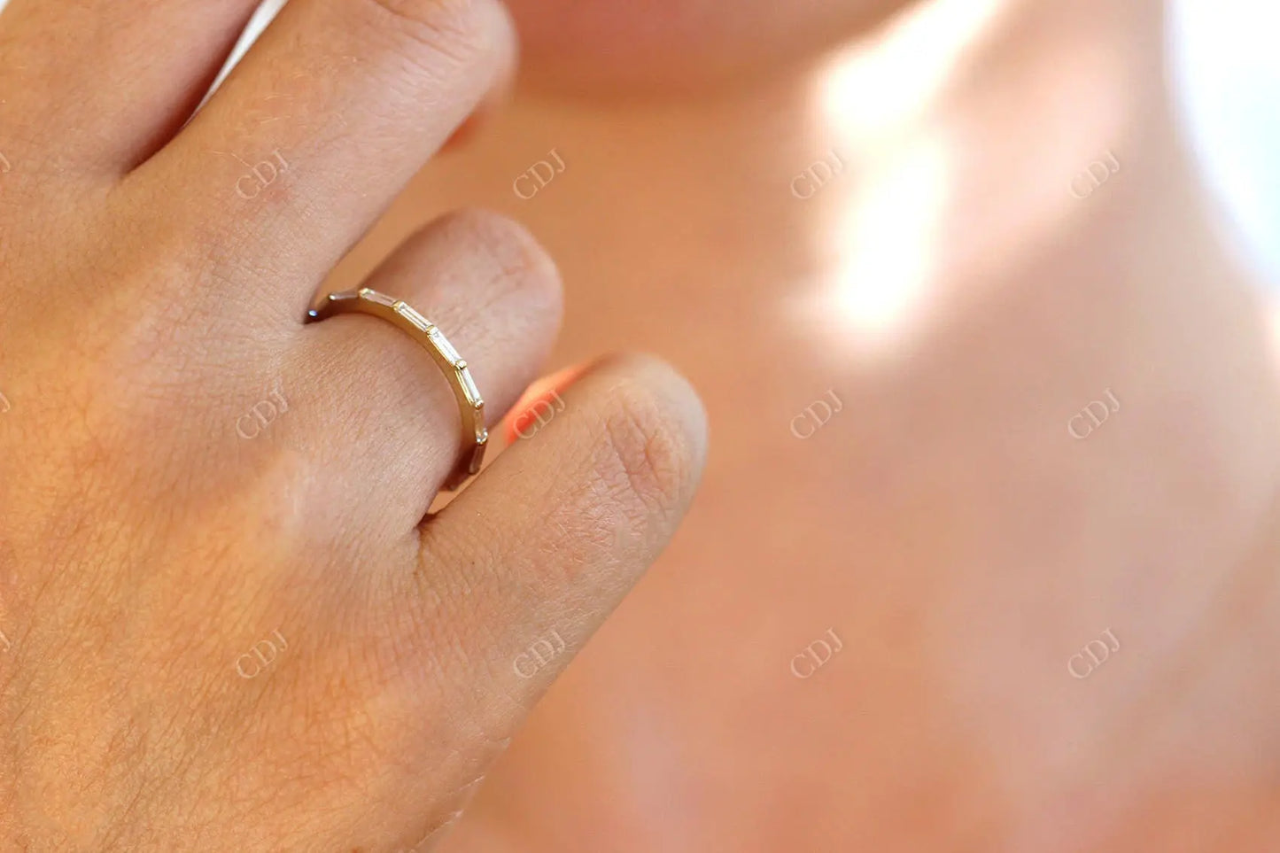 Whether it’s a wedding band, anniversary ring, or a self-love gift, this eternity band stands out with its ethical stones and minimalist design. Baguette CVD diamonds bring a unique sparkle that catches the light in an elegant, understated way — perfect for those who prefer modern refinement over flash.