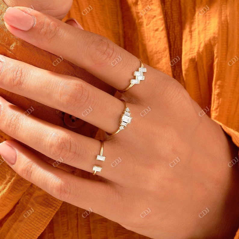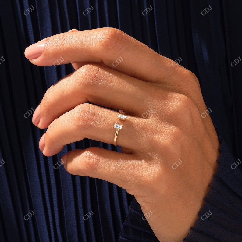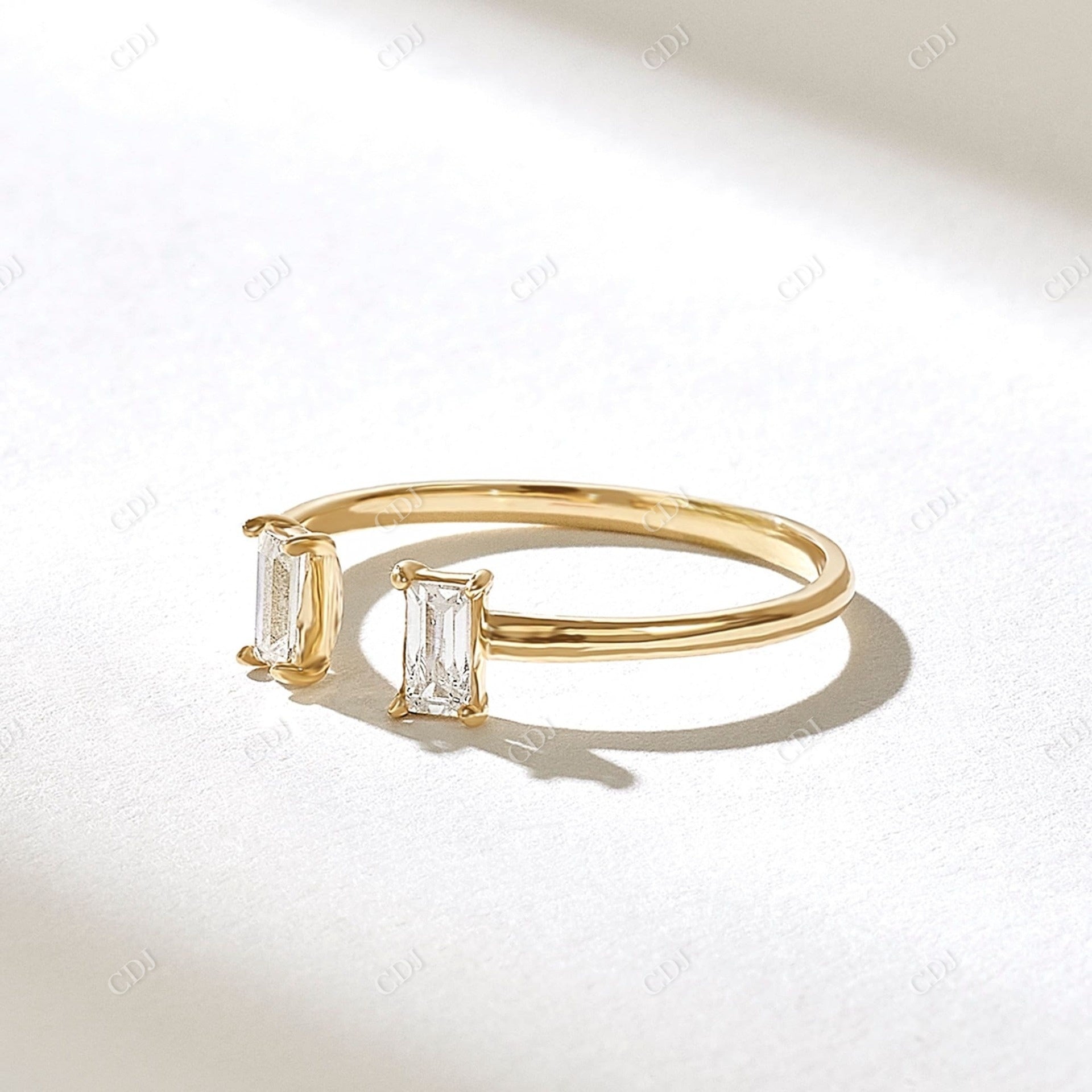 With clean lines and an elegant open-band silhouette, this piece blends architectural sophistication with heartfelt meaning. Crafted in solid 14K or 18K gold, it highlights two horizontally aligned baguette natural diamonds—an understated yet eye-catching representation of your story.