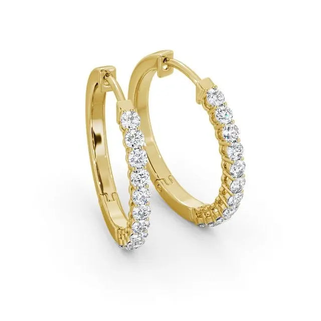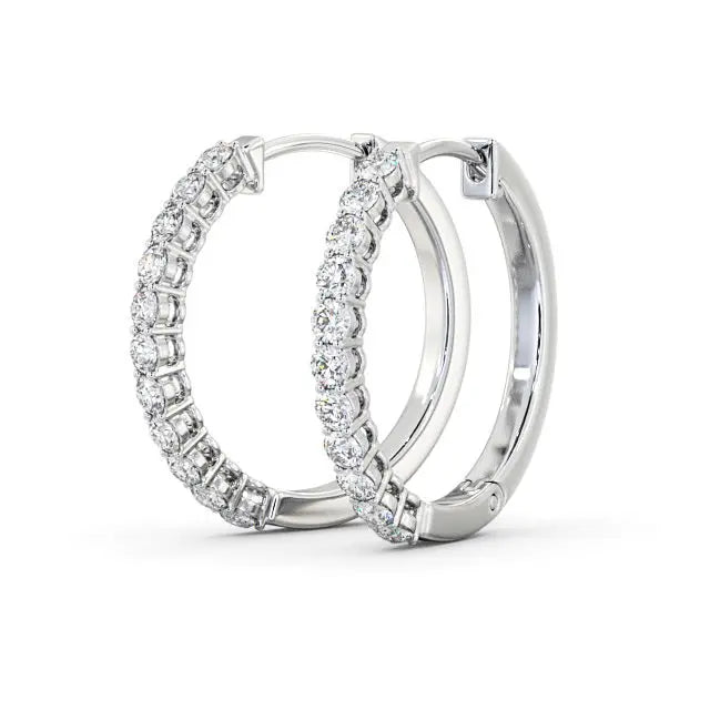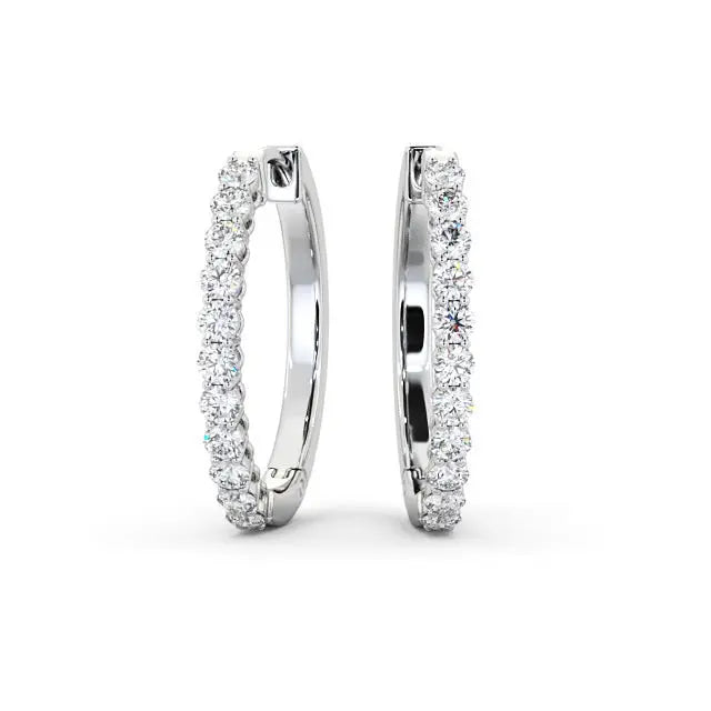 Set in a secure, polished frame, each diamond is expertly placed to maximize sparkle while maintaining a sleek, lightweight feel. These hoops are versatile enough for daytime wear and elegant enough to transition into evening effortlessly.