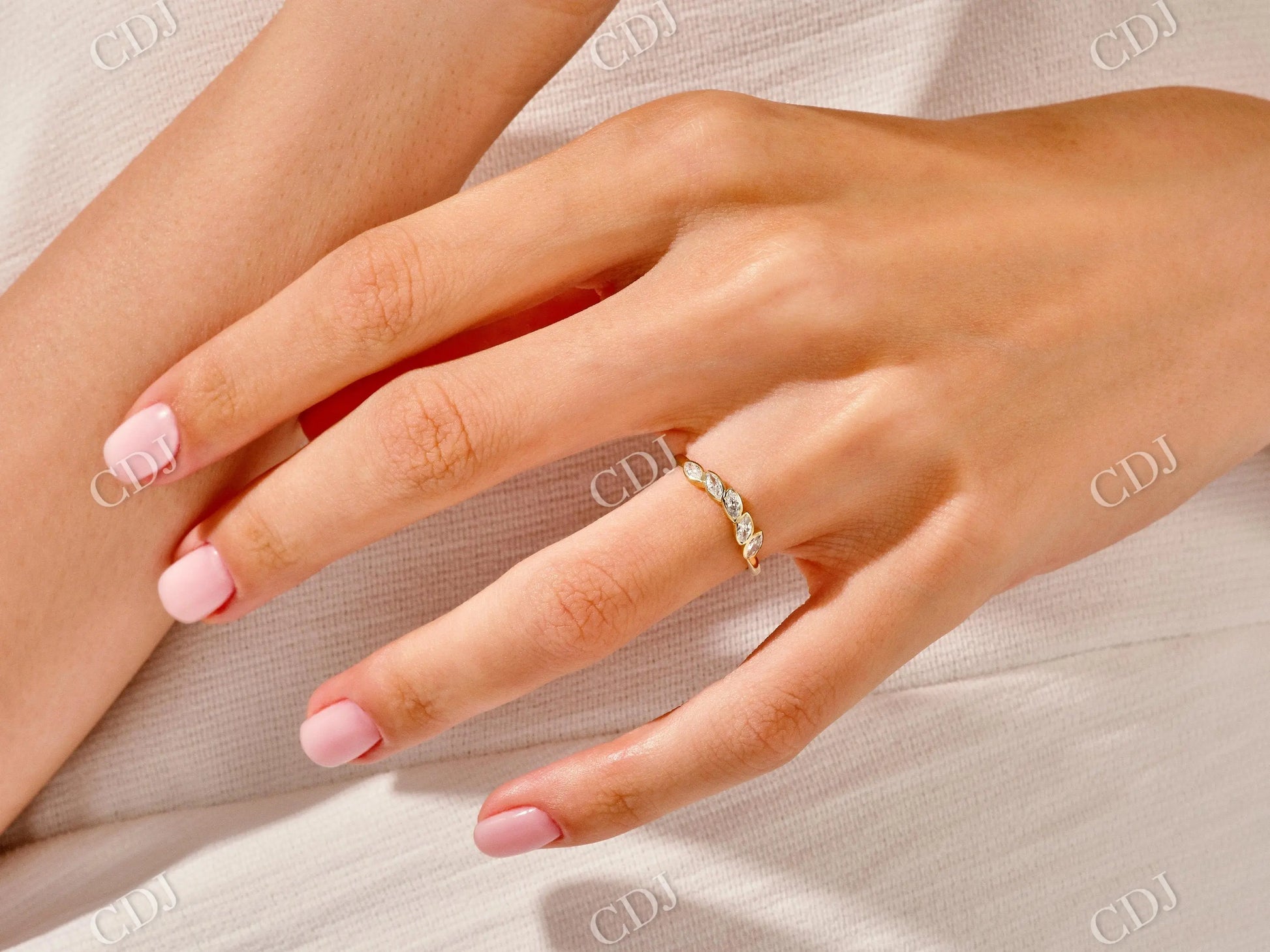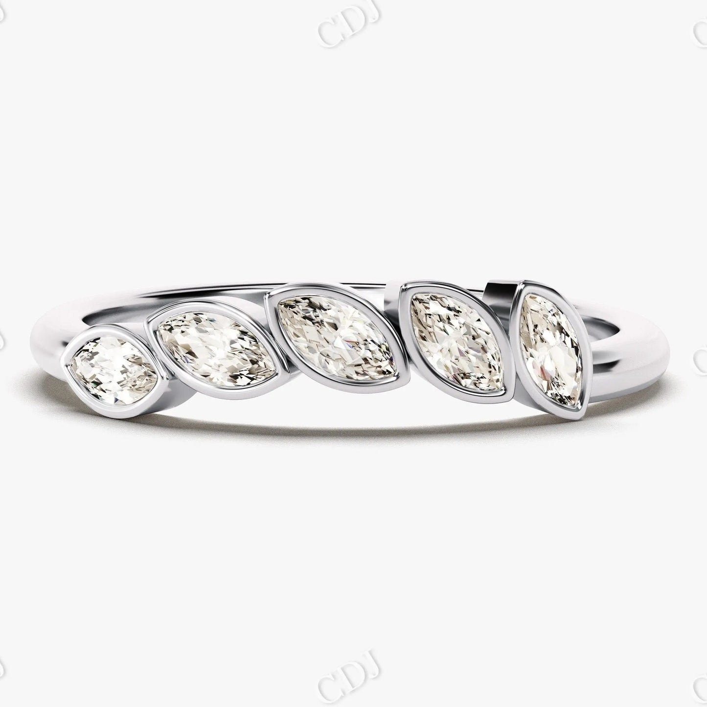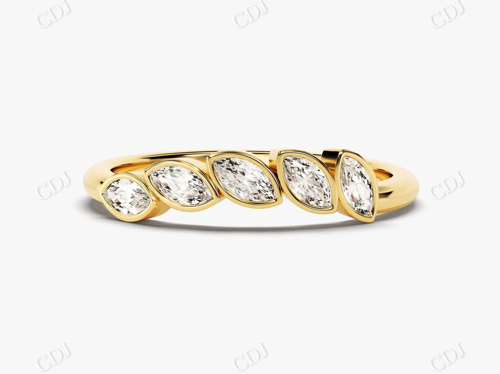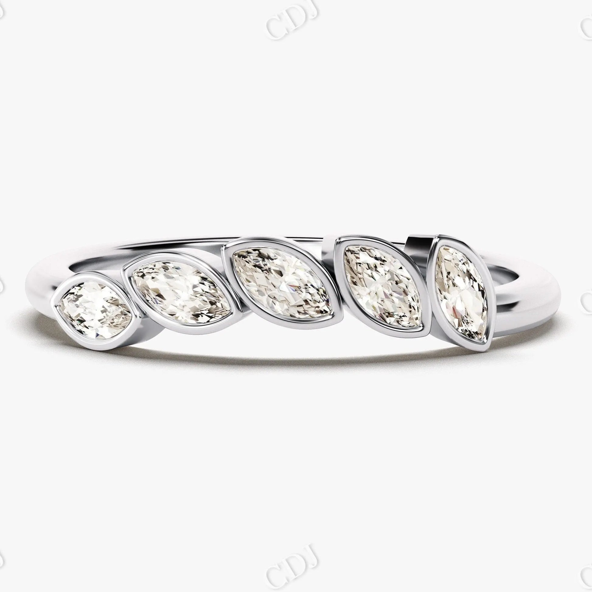 The marquise cut offers a distinctive, elongated shape that adds vintage-inspired sophistication, while the bezel setting enhances durability and comfort for daily wear. Designed as a matching band for engagement rings or as a standalone piece, this diamond band brings understated brilliance with lasting symbolism.