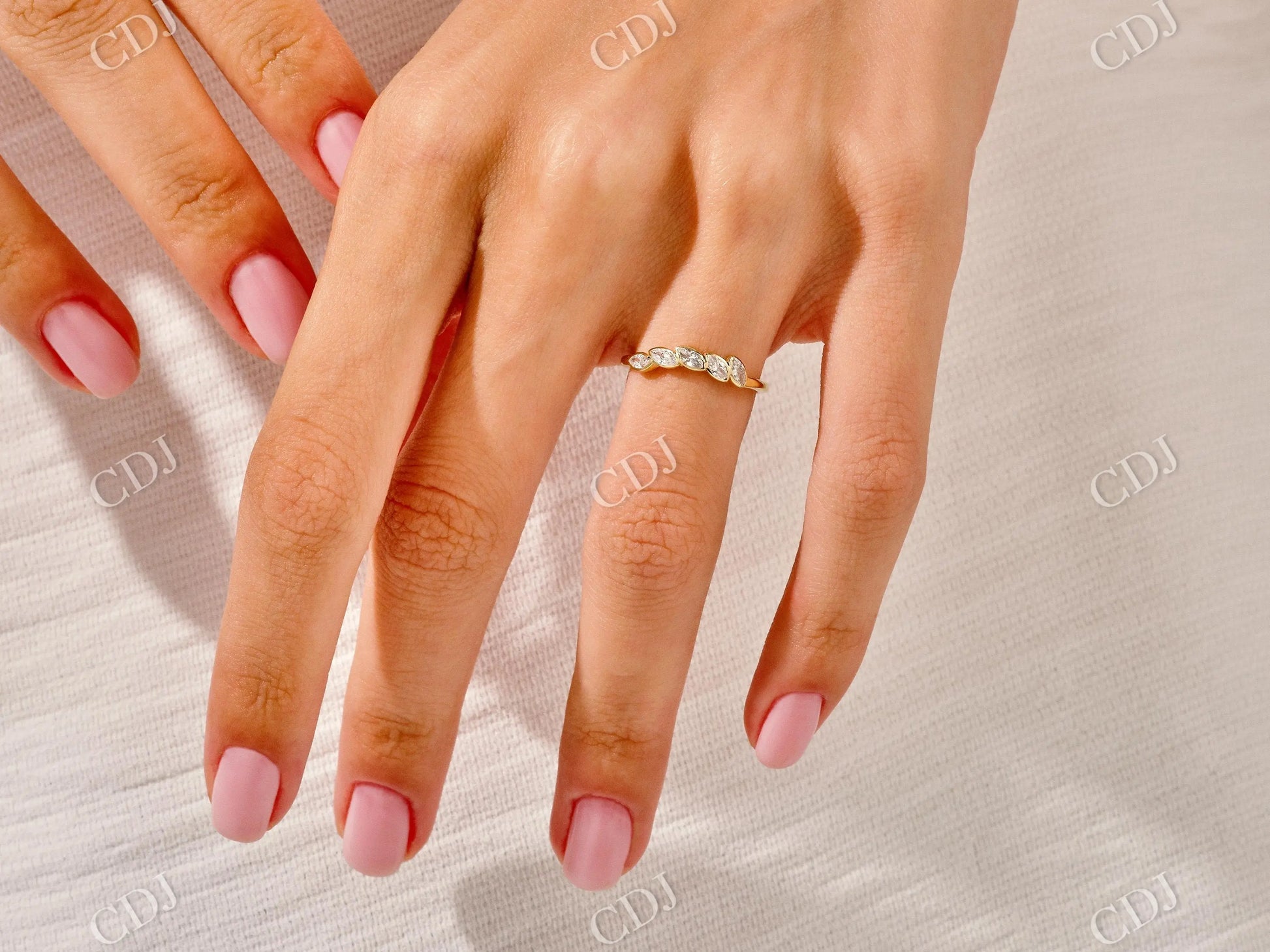 • Elegant Marquise Cut: The elongated shape visually lengthens the finger and adds a unique touch to any ring stack.