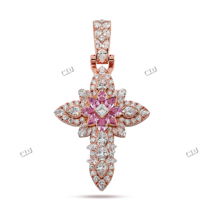 VVS Moissanite Diamond Rose Gold Plated Cross Pendant