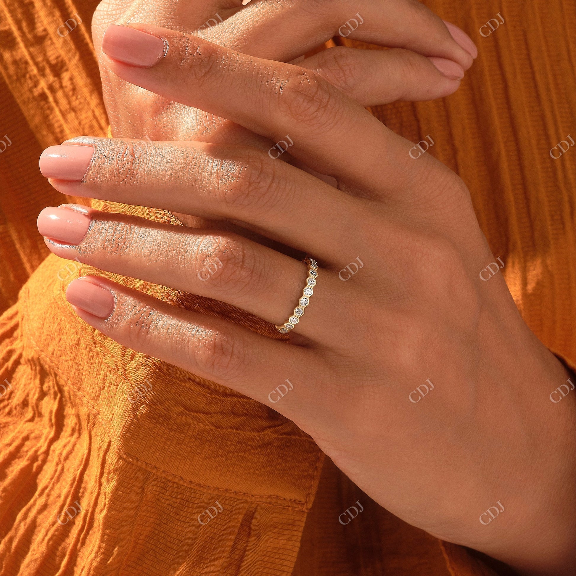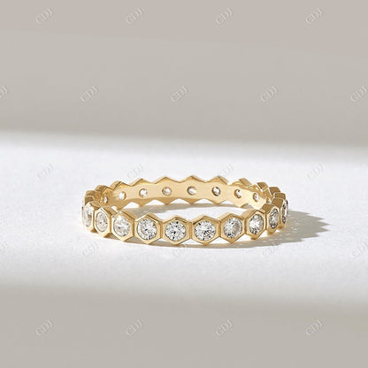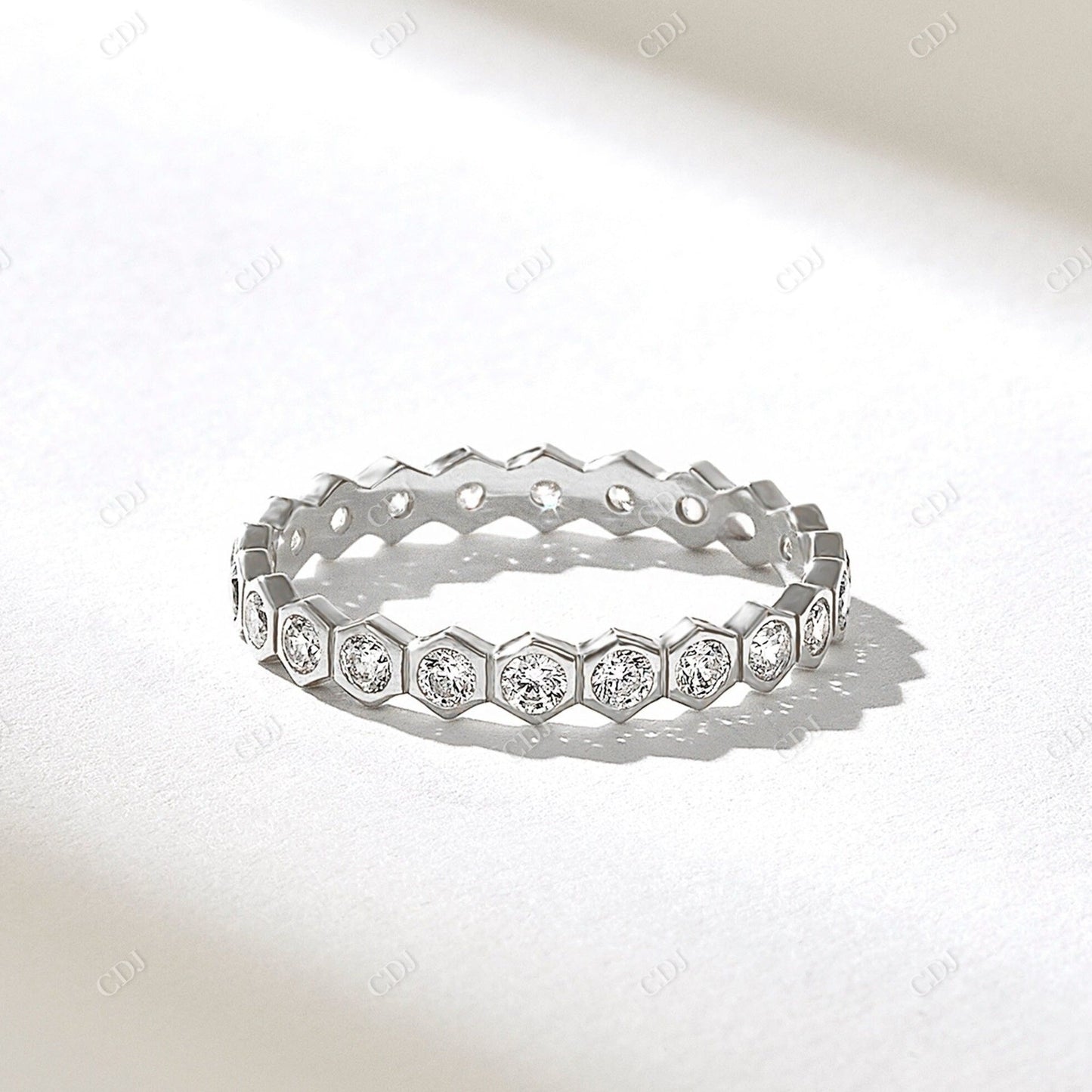 0.66CTW Real Round Cut Hexagon Bezel Set Full Eternity Wedding Band
