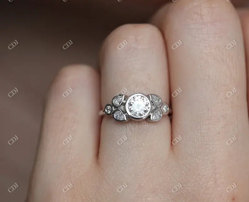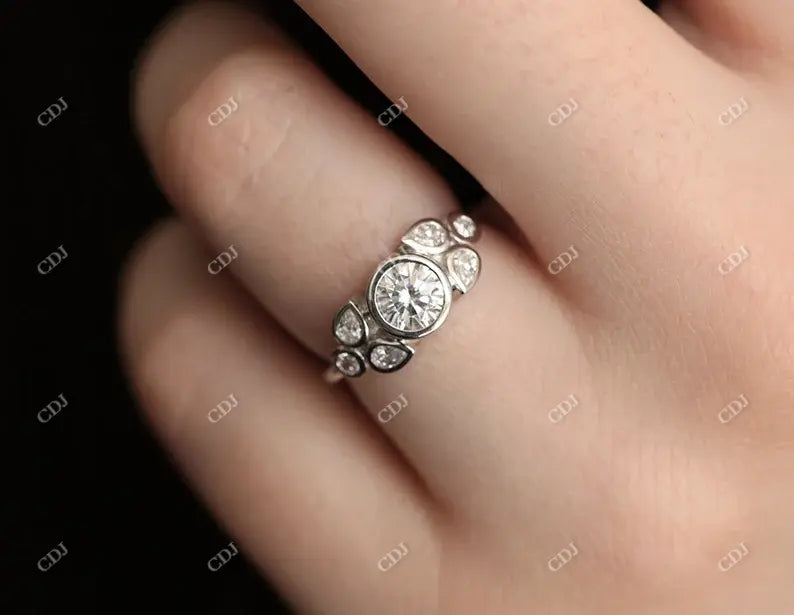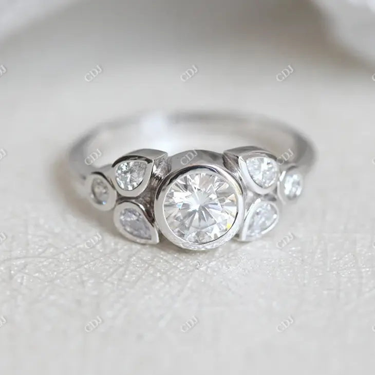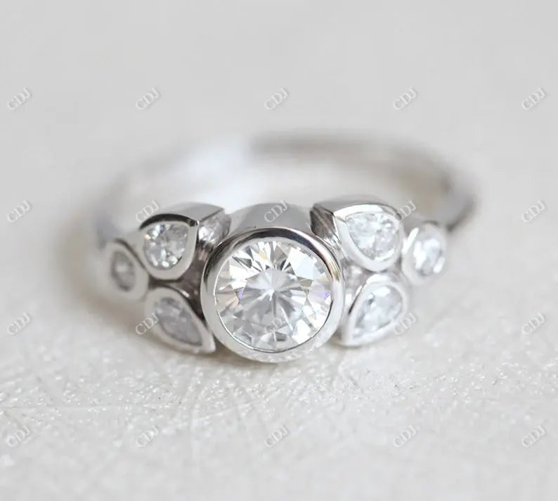 0.66CTW Round And Pear Cut Moissanite Engagement Ring