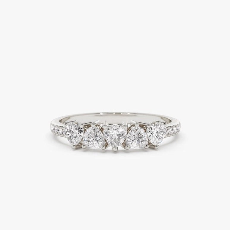 Make a Statement with the 0.70CTW Heart Shape Natural Diamond Half Eternity Engagement Ring