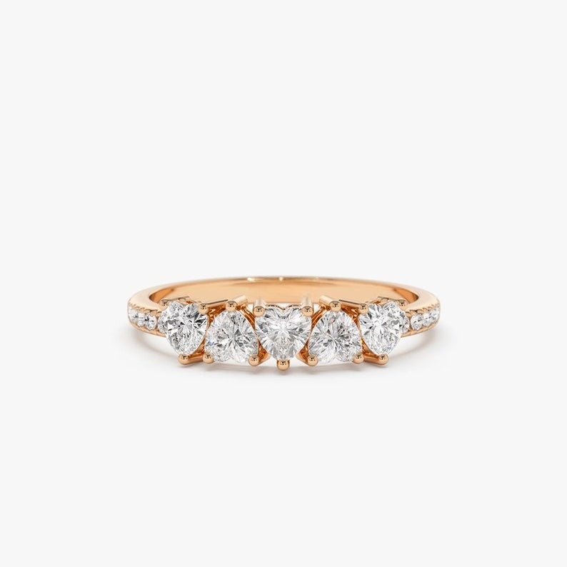 0.70CTW Heart Shape Natural Diamond Half Eternity Engagement Ring
