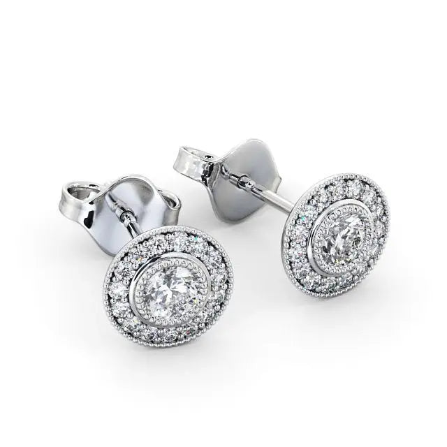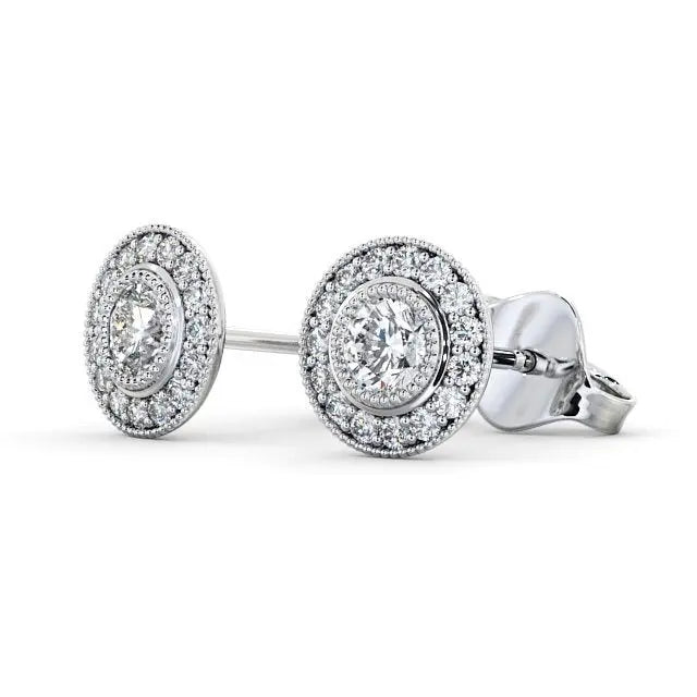 The milgrain edging around the diamond setting adds texture and an antique flair, making these studs uniquely charming. This fine detail reflects masterful craftsmanship and elevates the classic stud earring design.