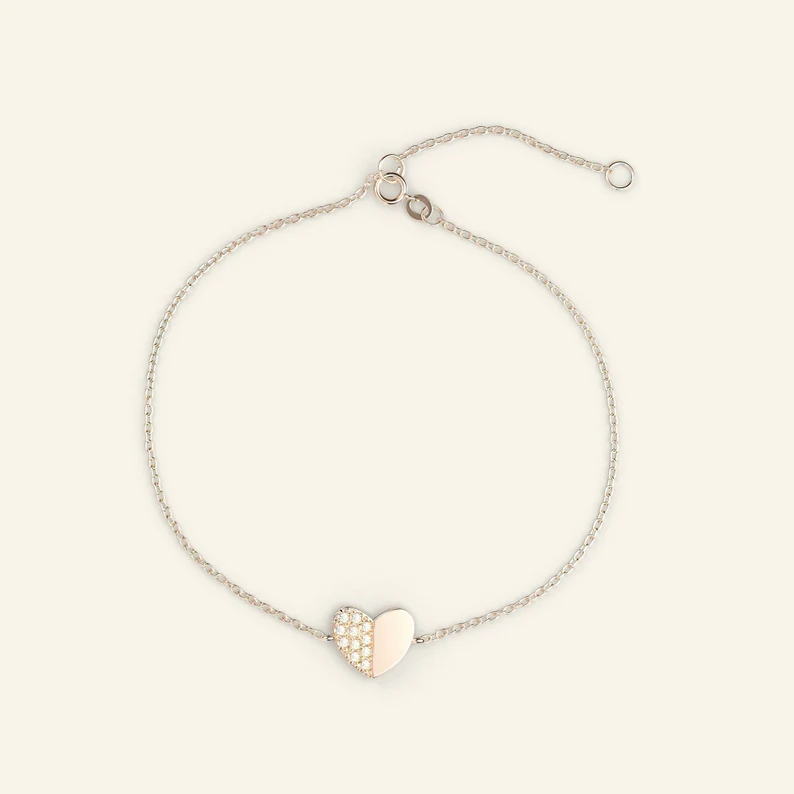 • Heart-Shaped Diamond Charm: A romantic focal point that captures light beautifully