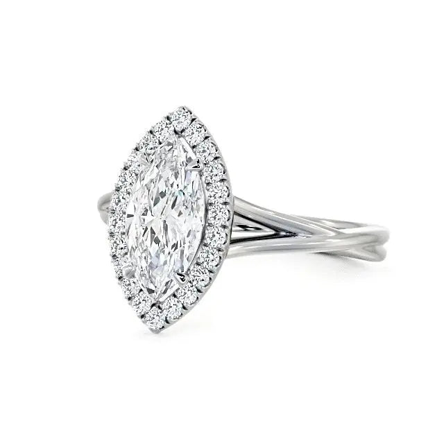 0.95CT Halo Set Marquise Cut Lab Grown Diamond Ring
