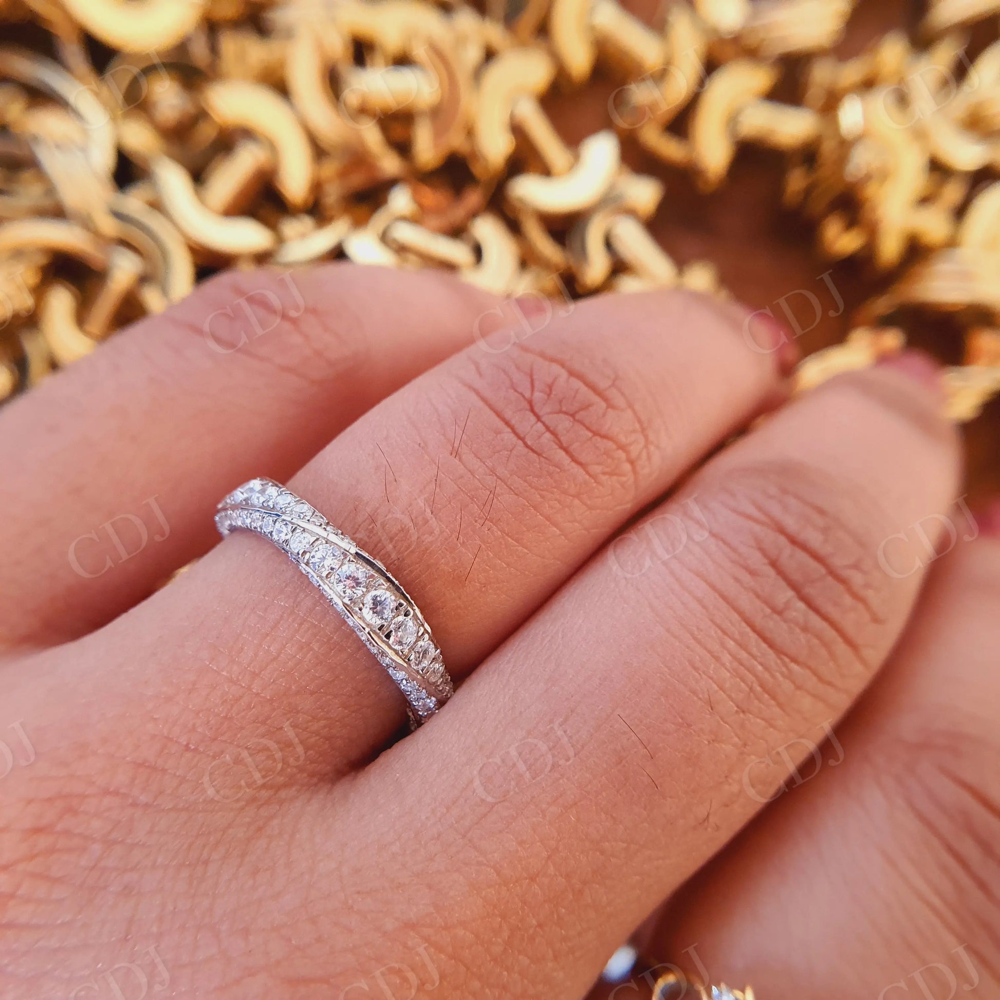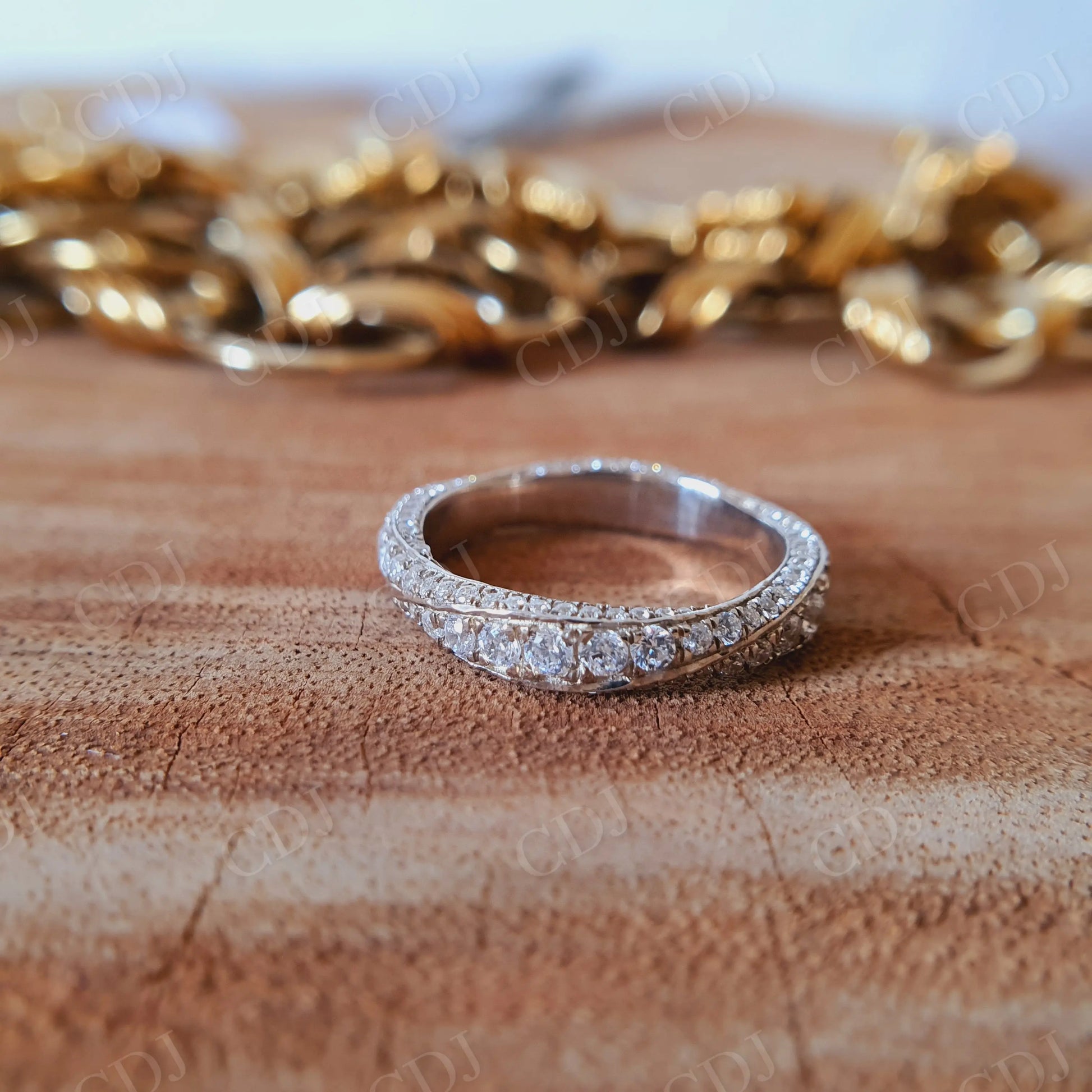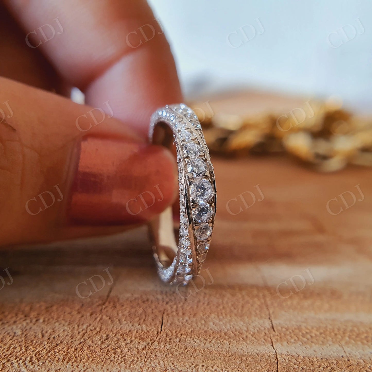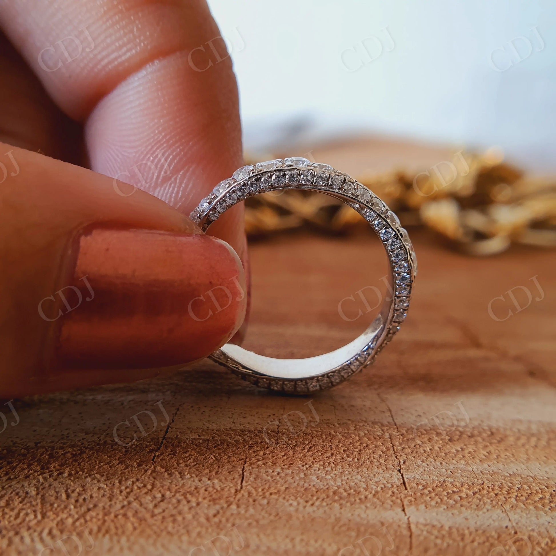 • Eternity Design: Stones set continuously around the band for complete sparkle