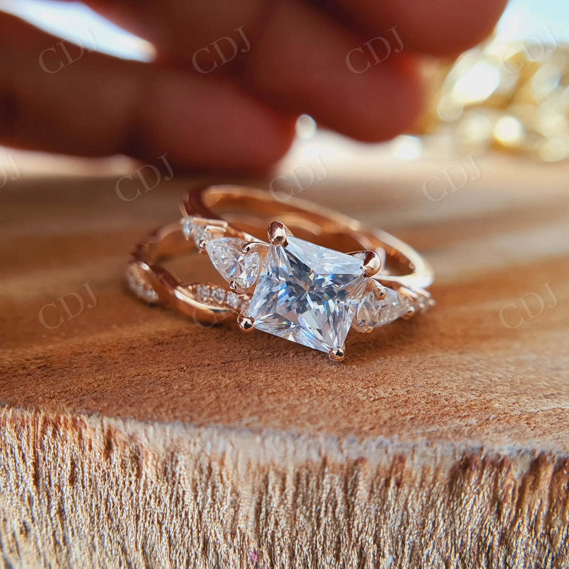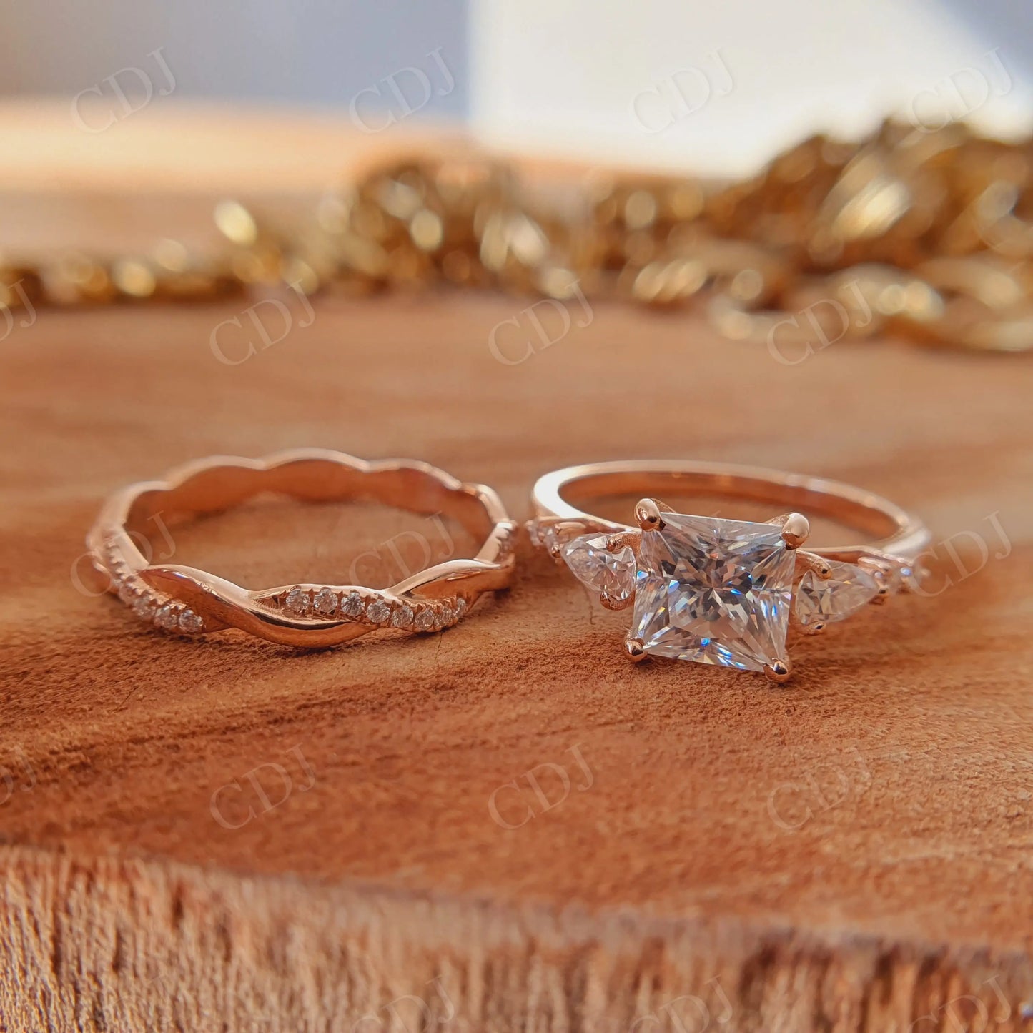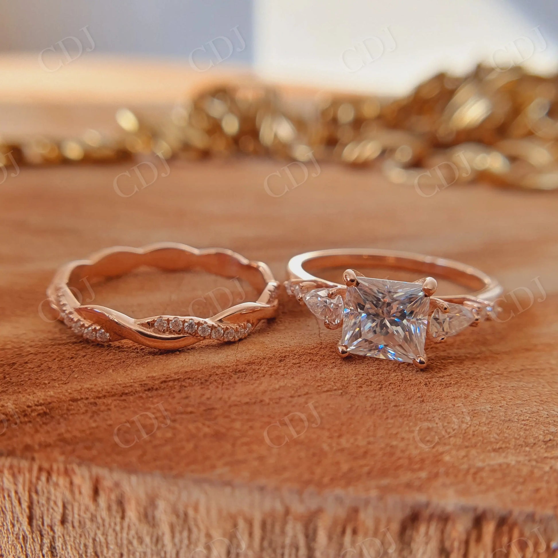 1.45CT Princess Cut Unique Moissanite Engagement Ring Set