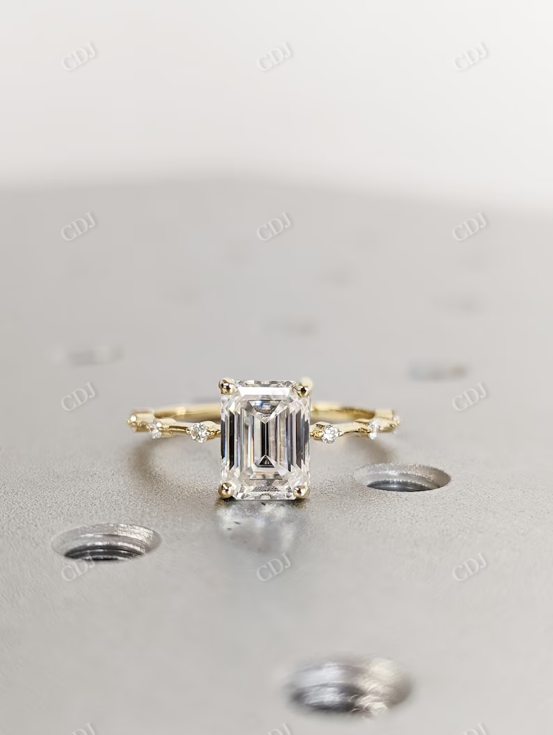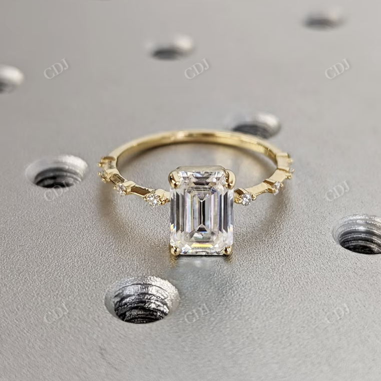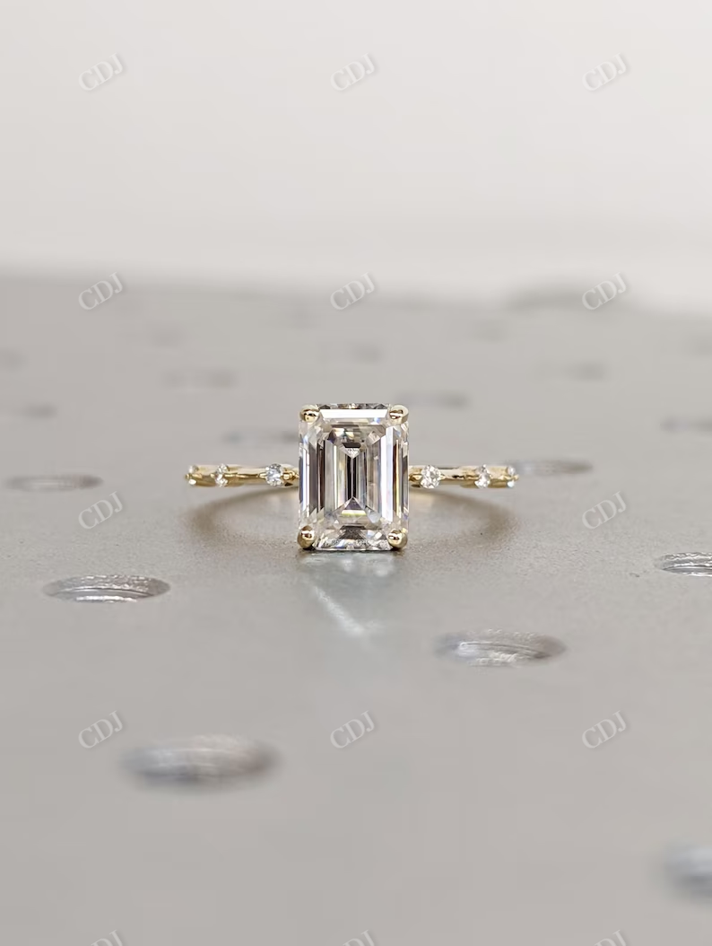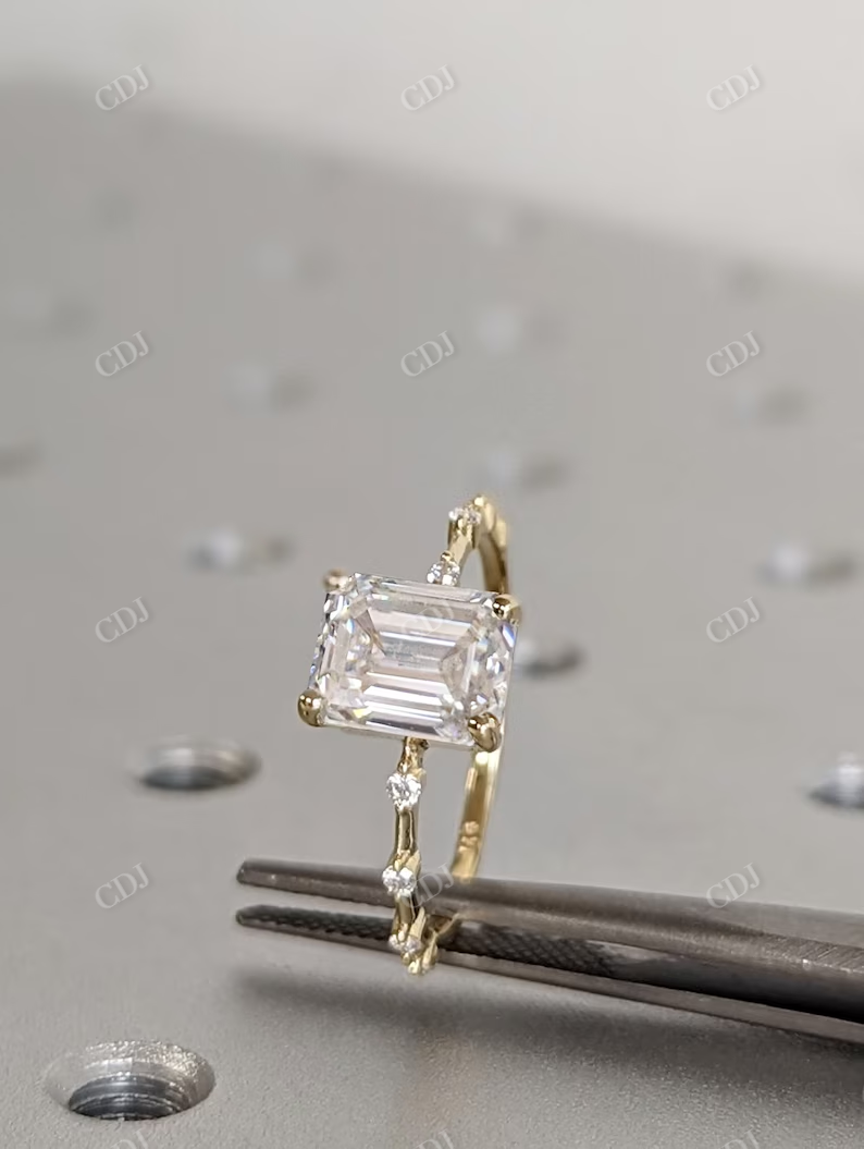 • Brilliant Cut for Maximum Sparkle: Emerald cut moissanite reflects light brilliantly, creating a sophisticated shine.