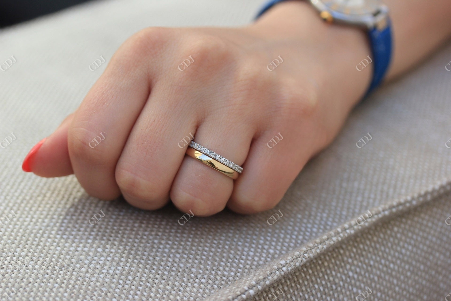 • Half Eternity Design: Diamonds are meticulously set halfway around the band for a classic yet practical design that’s comfortable for daily wear.
