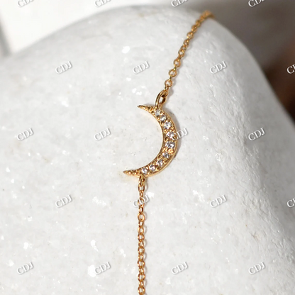 14k Solid Gold Natural Moon Design Diamond Bracelet