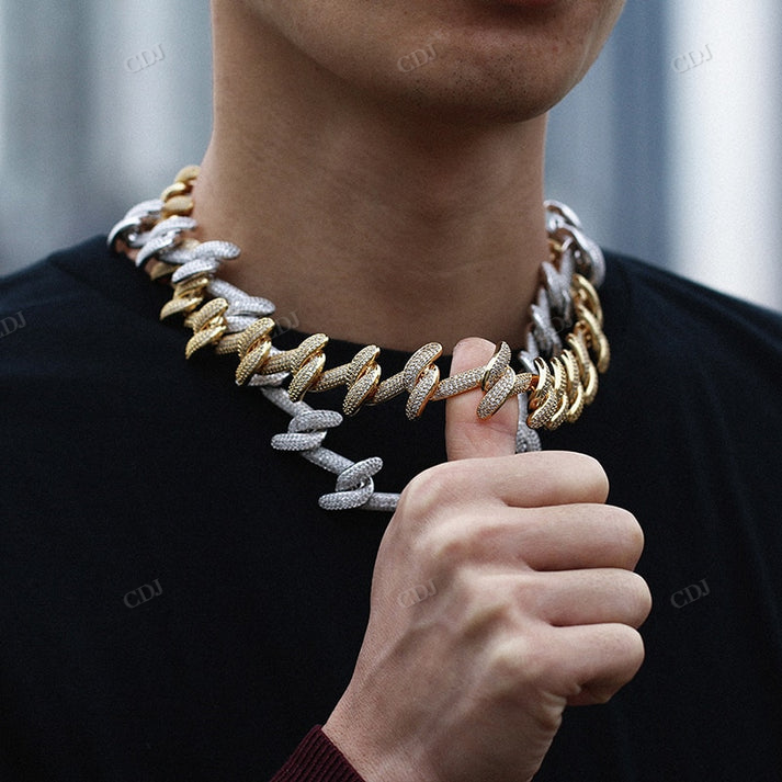 Unlike standard Cuban or curb chains, this twist link style adds a dynamic, spiraling aesthetic that catches light from every angle — giving your fit a whole new level of movement and sparkle.