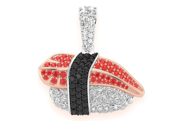 Featuring a delicious sashimi sushi roll design, this pendant is adorned with a dazzling 2.00 carat total weight of shimmering diamonds. Each diamond is carefully set to enhance its brilliance and beauty, creating a mesmerizing sparkle that will capture the light from every angle.