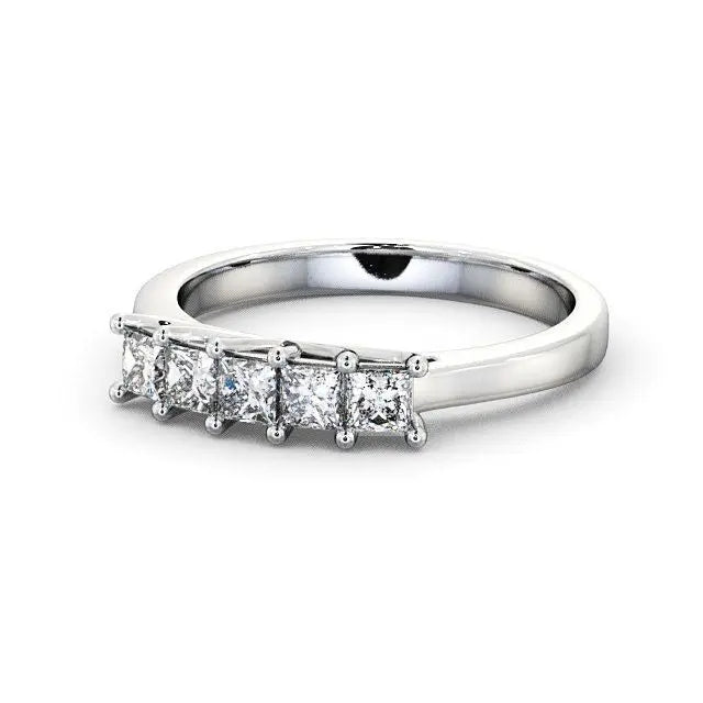 The five-stone ring symbolizes shared memories, lasting love, and future promises. This design elevates that meaning with the crisp sparkle of princess cuts — offering a bolder and more modern look compared to traditional round or oval styles.