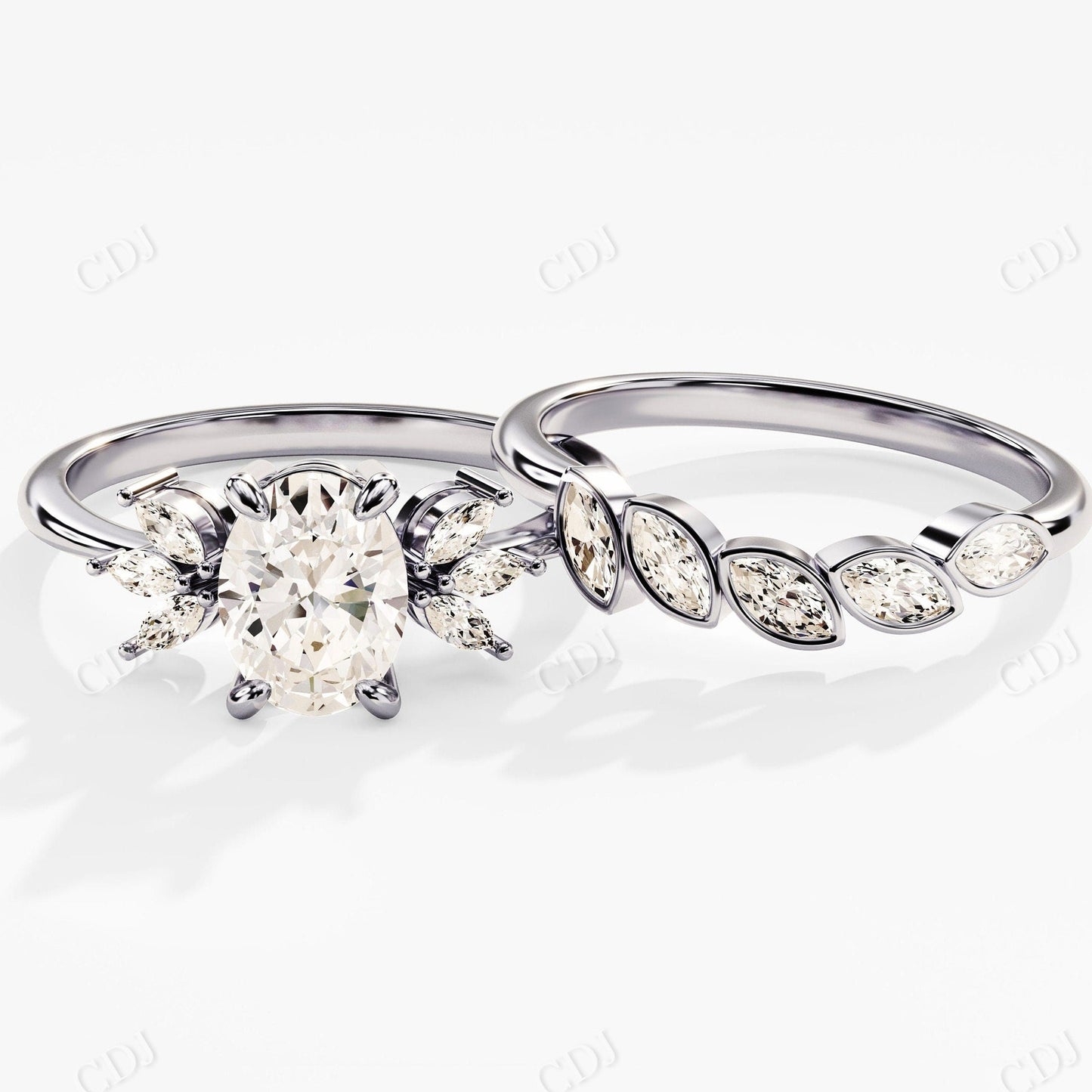 Tags: 2.15CTW moissanite bridal setlab grown moissaniteoval cluster moissanite ringsustainable bridal ring setvintage moissanite ringwhite gold bridal set