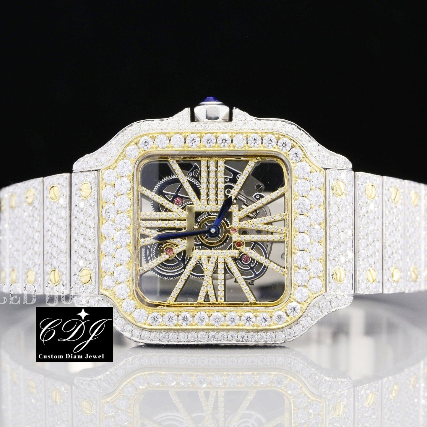 Make a lasting impression with the Hand Set Iced Out Diamond Cartier Skeleton Moissanite Watch — where craftsmanship meets radiant design.
