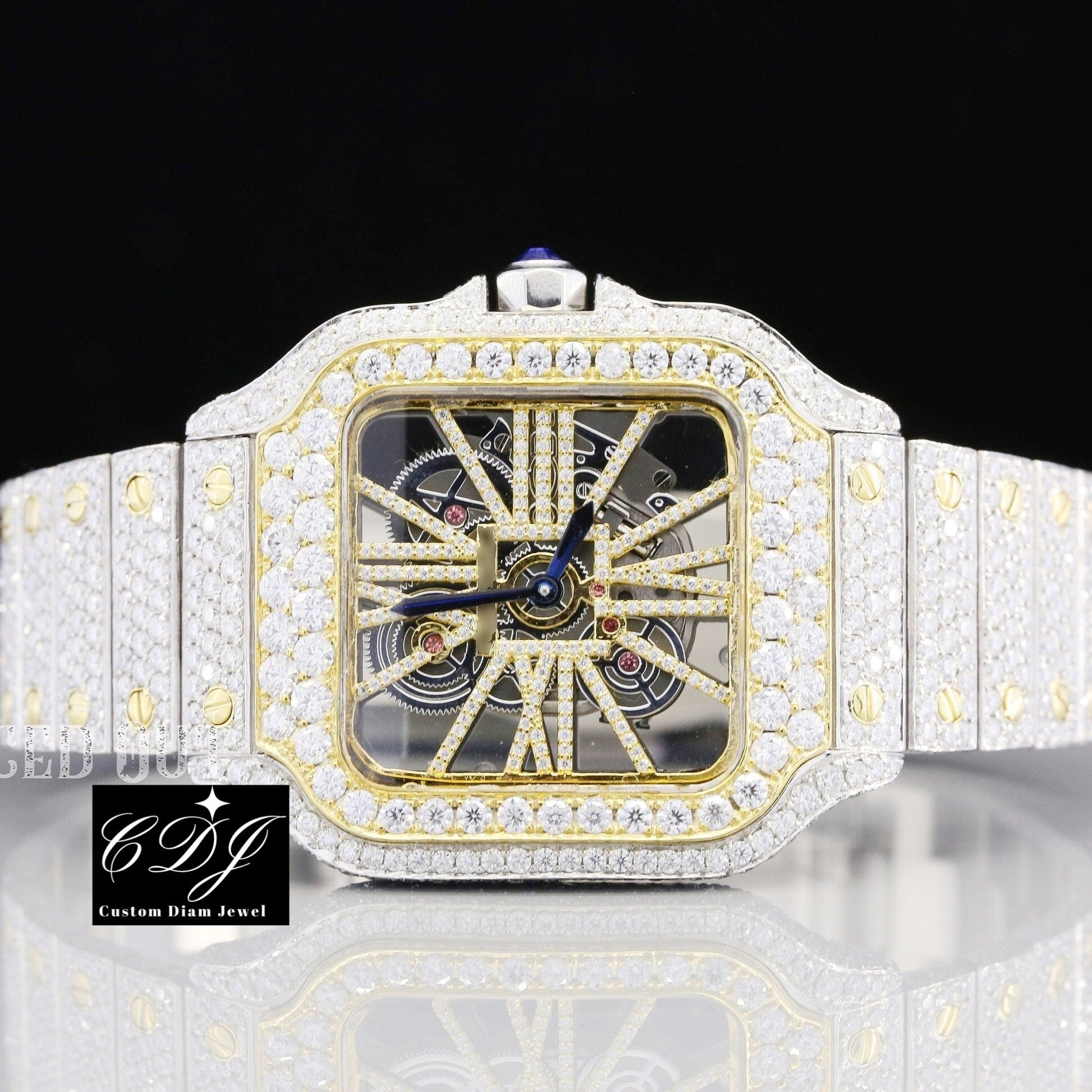 Tags: Cartier style watchhand set diamond watchiced out moissanite watchluxury iced watchmoissanite skeleton watchskeleton dial watch