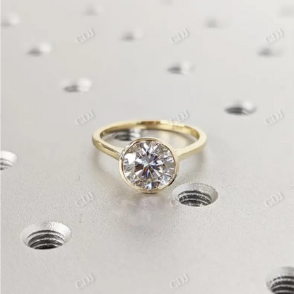2CT Round Cut Moissanite Bezel Set Solitaire Ring