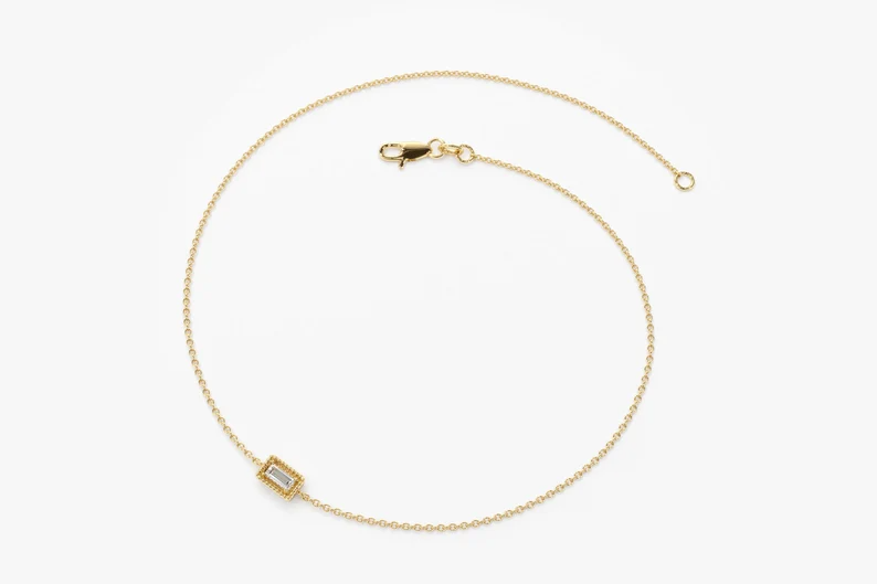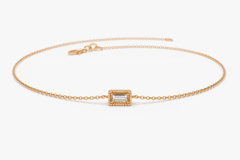 Add a touch of elegance to your look with this stunning Dainty Baguette Lab Grown Diamond Bracelet. The exquisite 3.25x 1.5mm baguette lab-grown diamonds are beautifully crafted to create a delicate and sophisticated piece of jewelry.