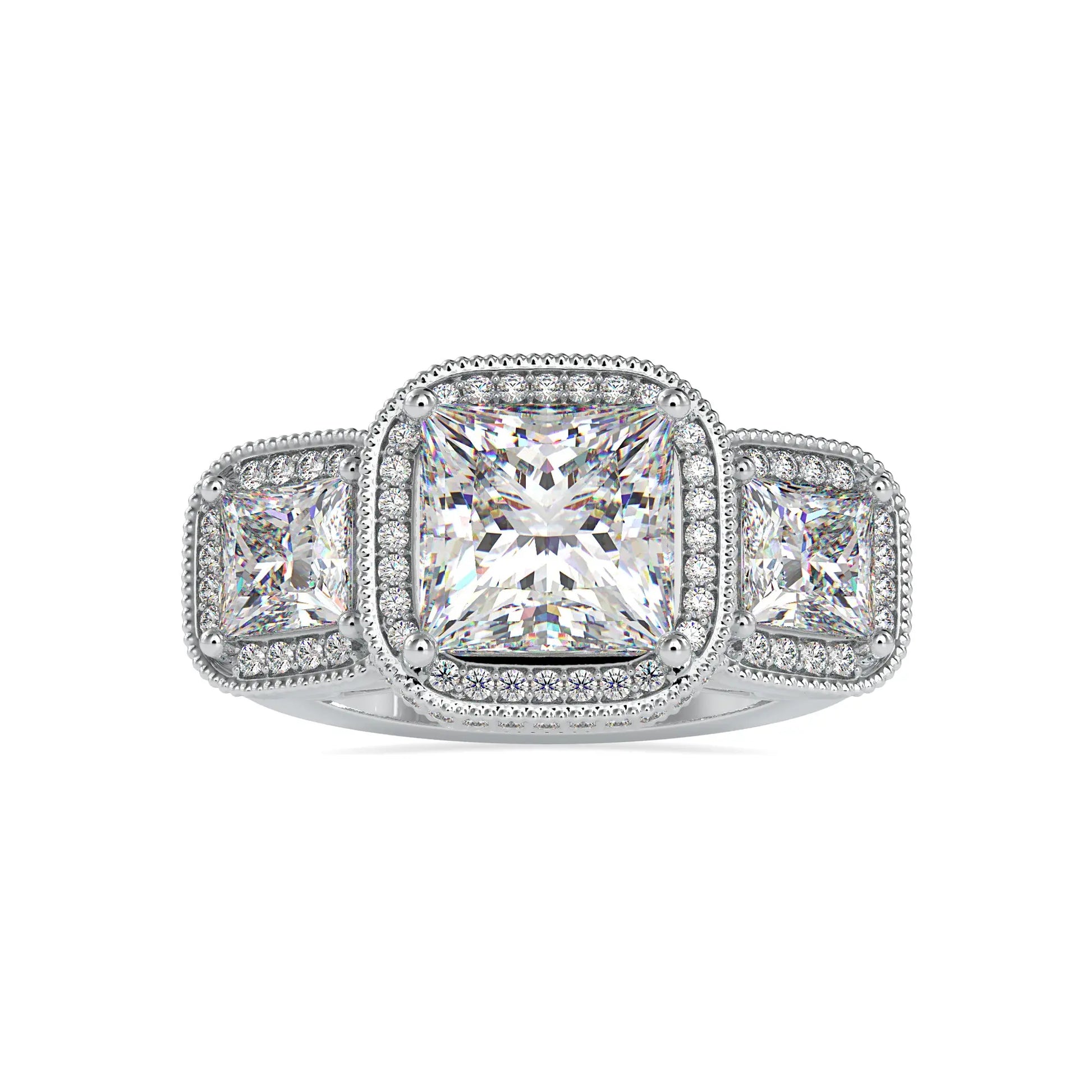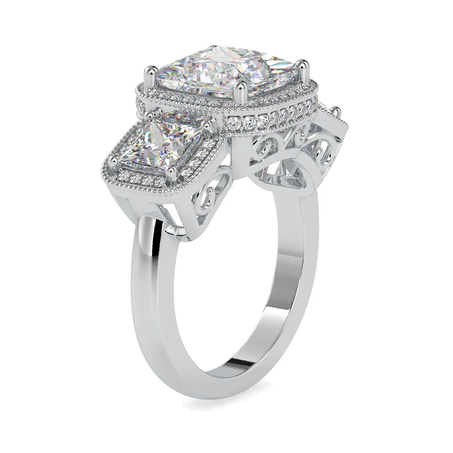 Tags: 5.23CTW diamond ringanniversary ring for herhalo diamond ringluxury bridal jewelrymodern diamond ringprincess cut three stone ring