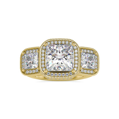Whether worn as an engagement ring or anniversary gift, the 5.23CTW Princess Three Stone Halo Diamond Ring is a piece you’ll treasure for life—and one that turns heads every time.