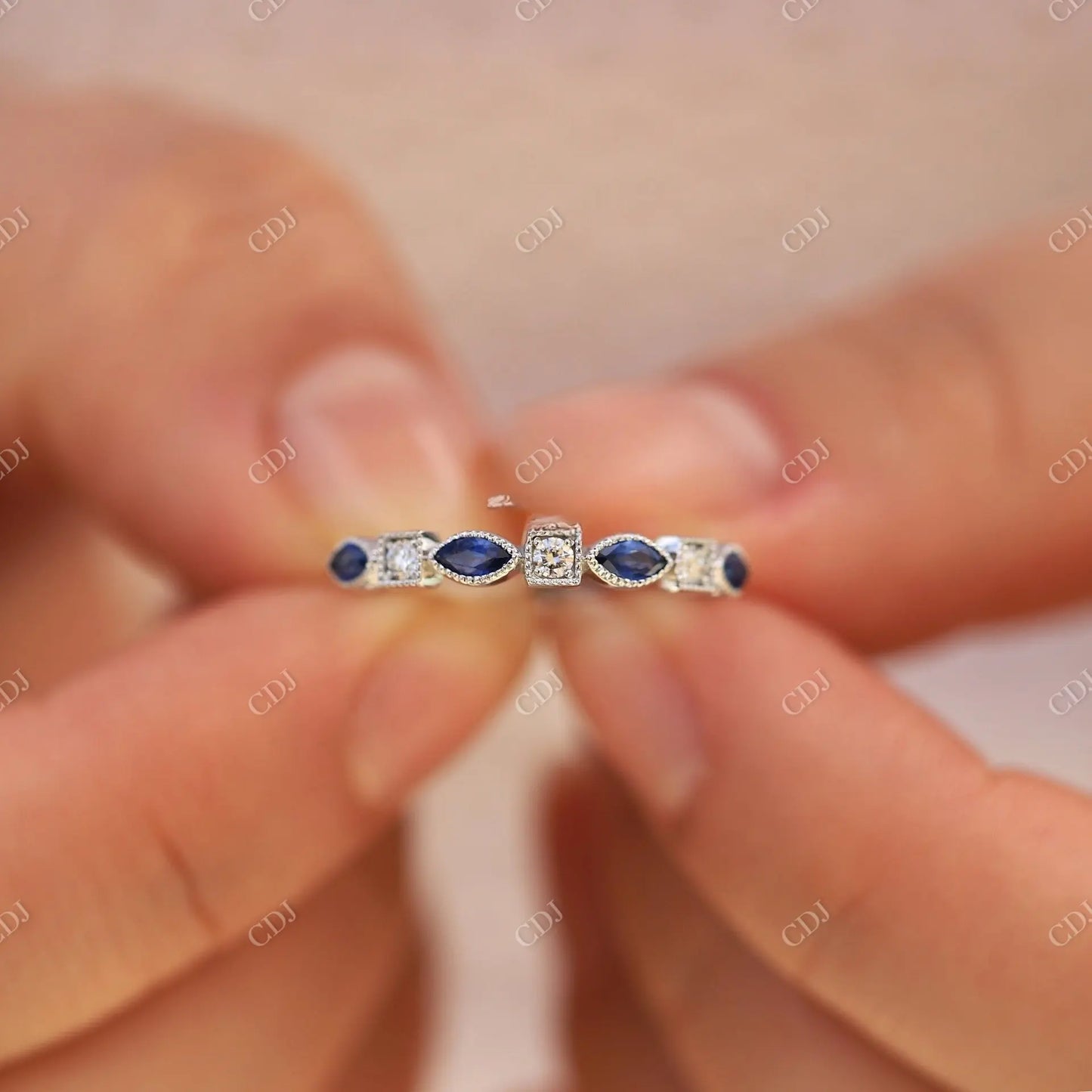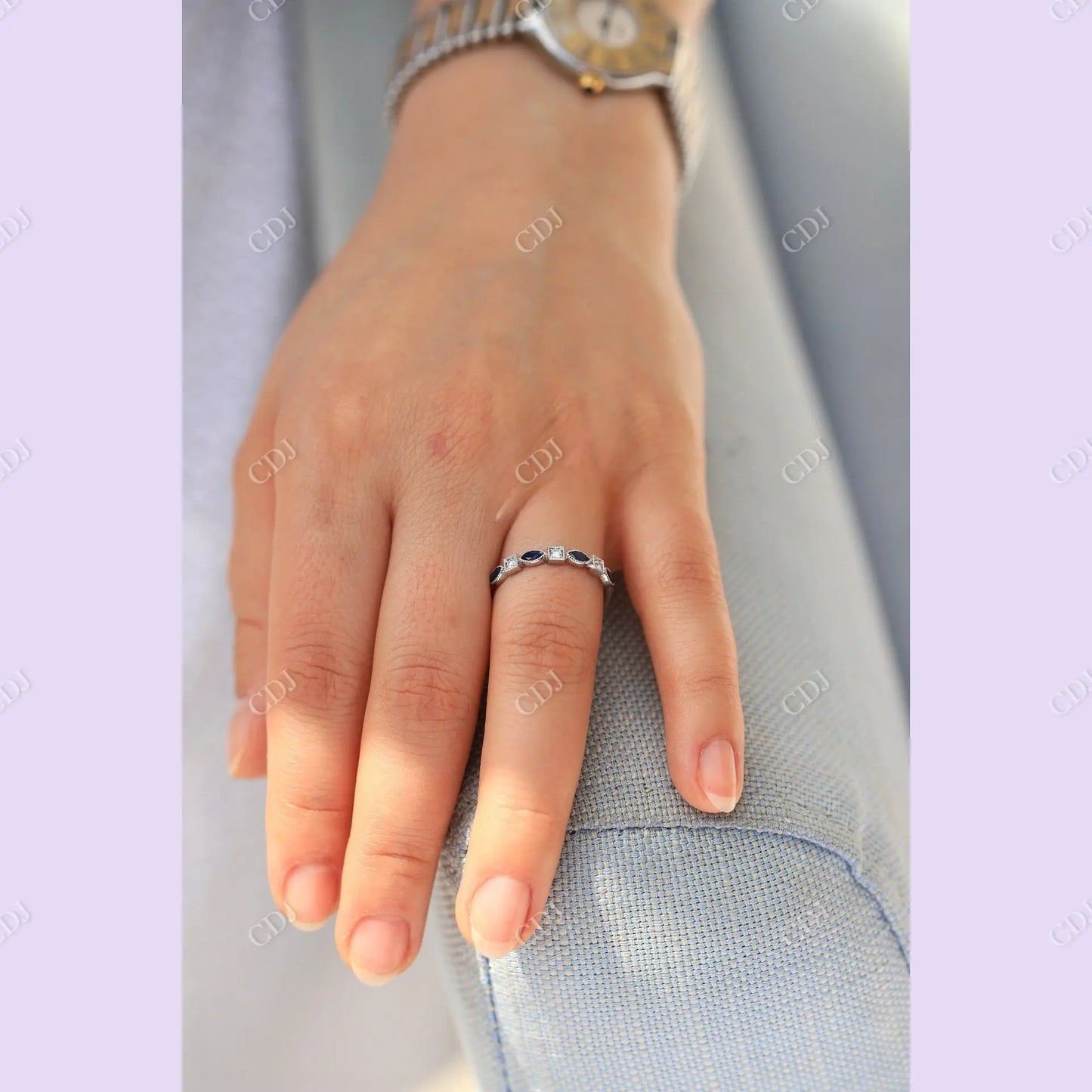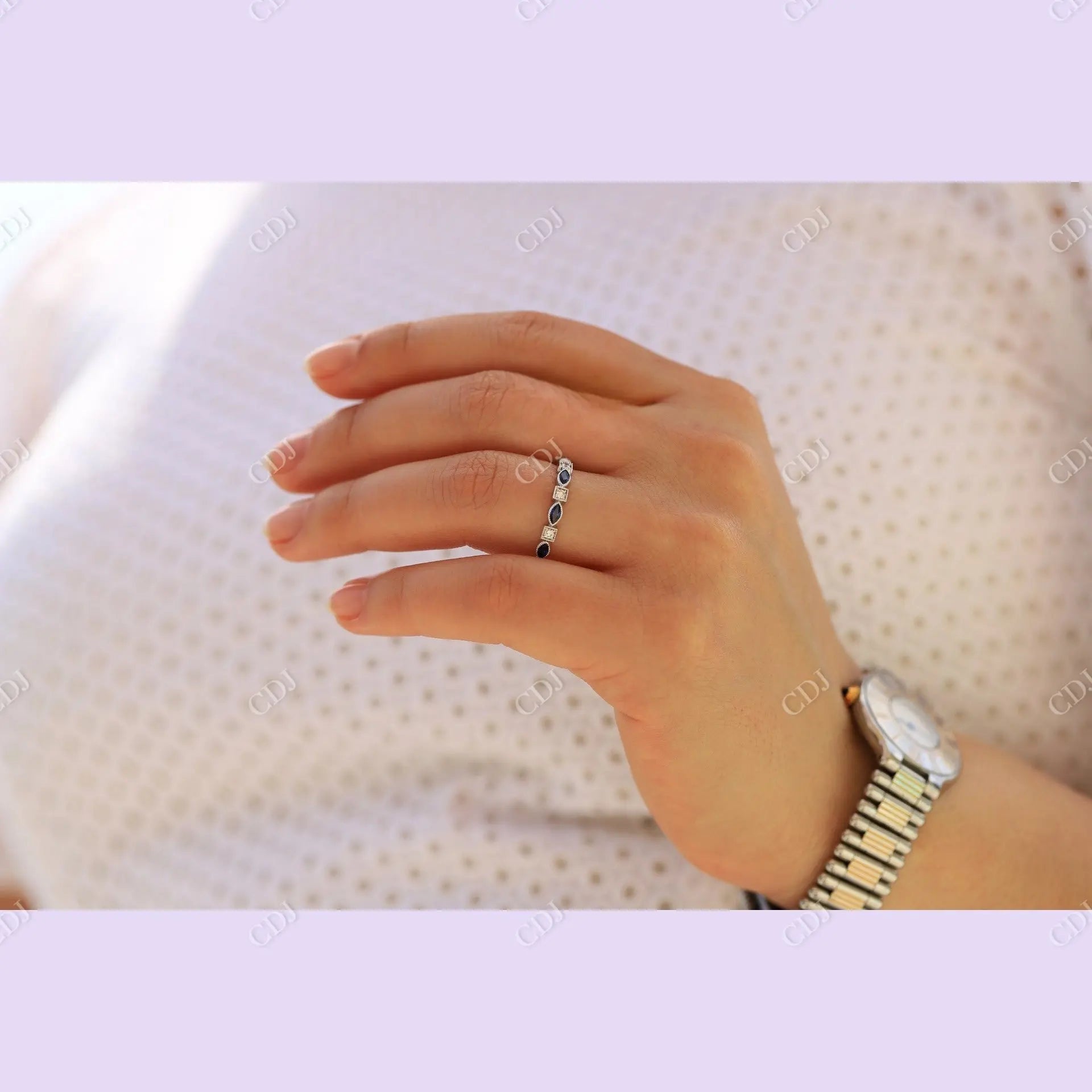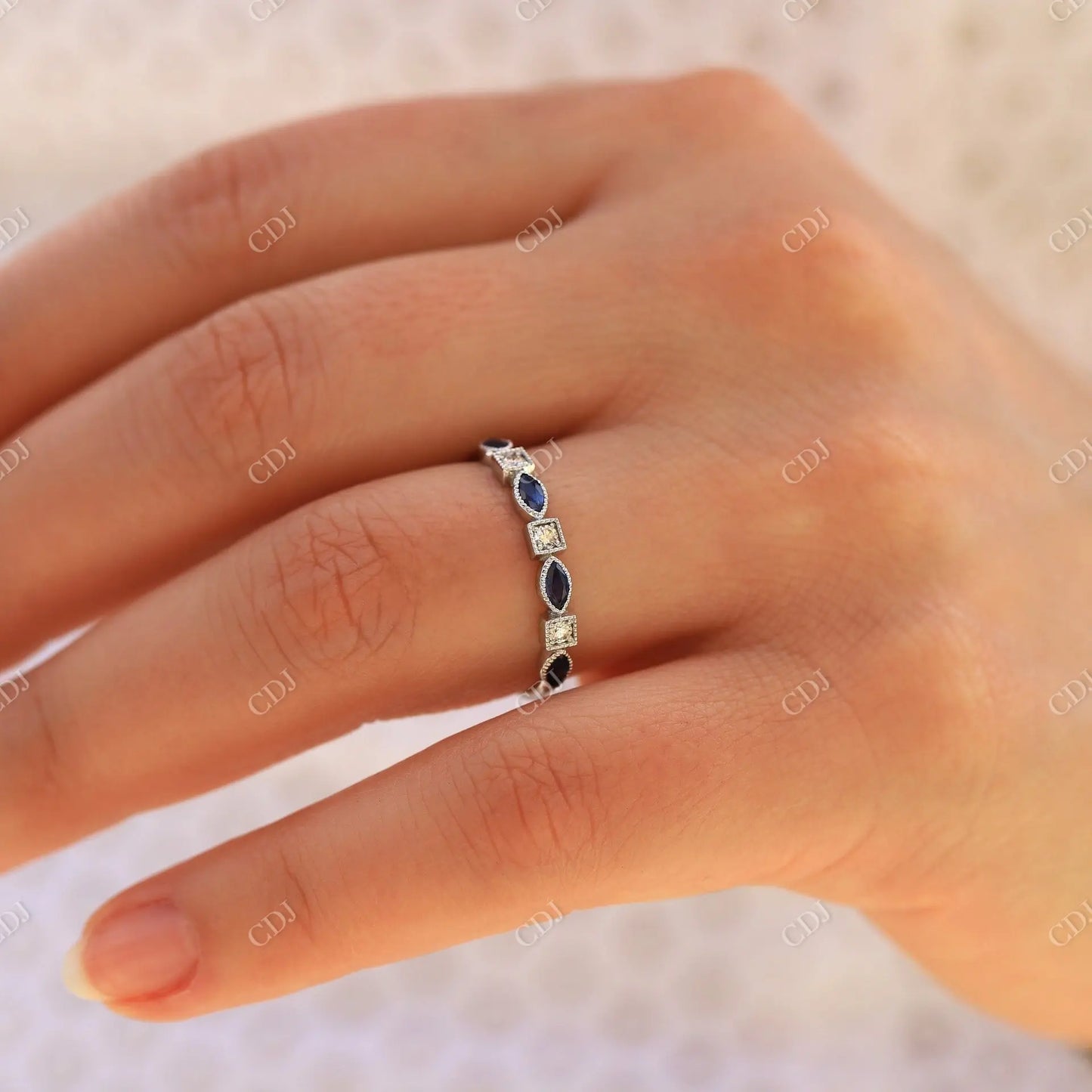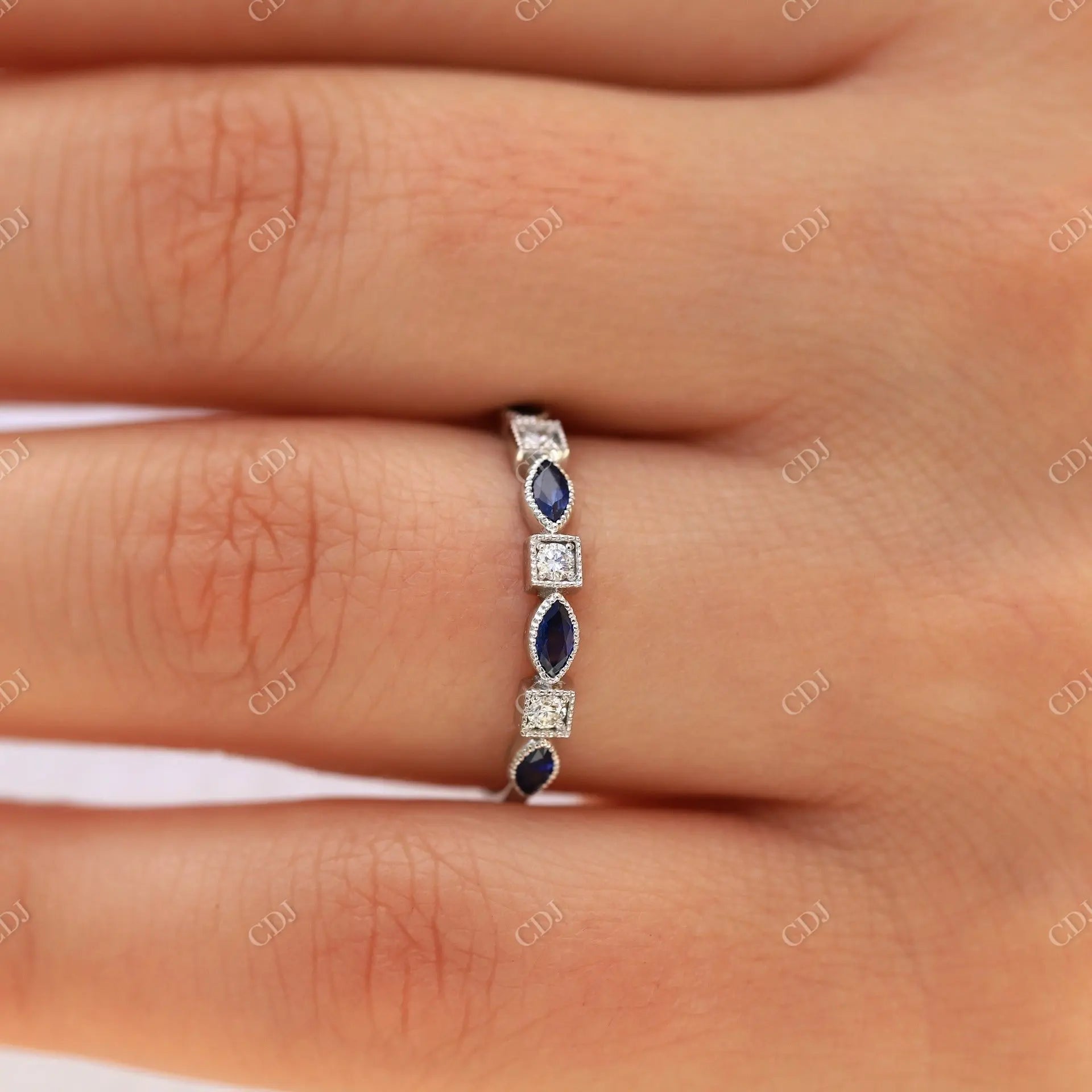 Alternating Round Moissanite and Marquise Cut Wedding Band – Unique Elegance and Sparkle