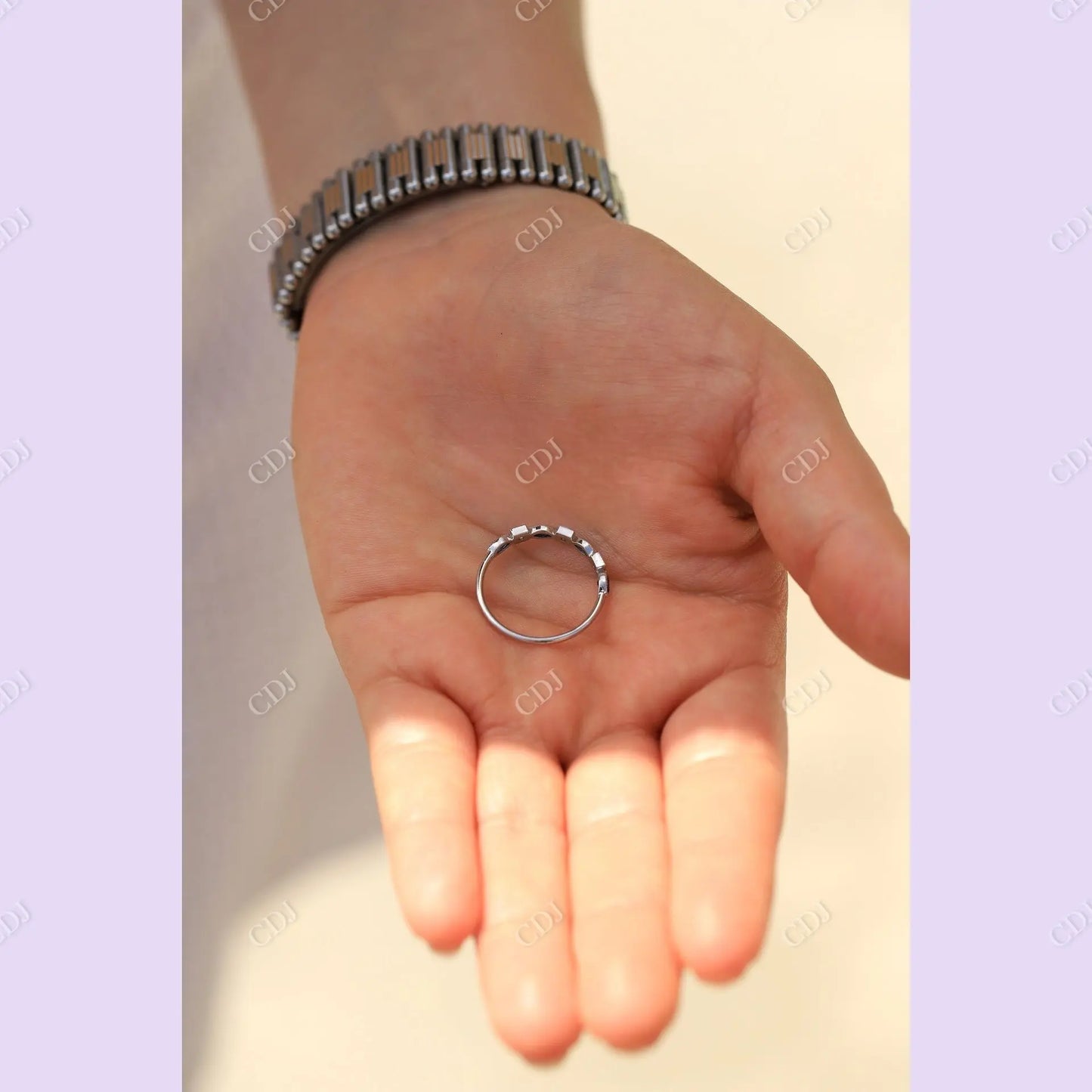Whether as a wedding band or an anniversary gift, this alternating cut moissanite band makes a meaningful statement. Its unique design complements various engagement rings or can be worn alone as a stunning symbol of commitment.
