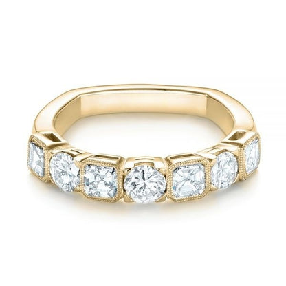 Perfect as a wedding band, anniversary ring, or standalone statement piece, this design is made for those who want their jewelry to feel one-of-a-kind. The varying shapes add visual interest while maintaining a cohesive, balanced flow.