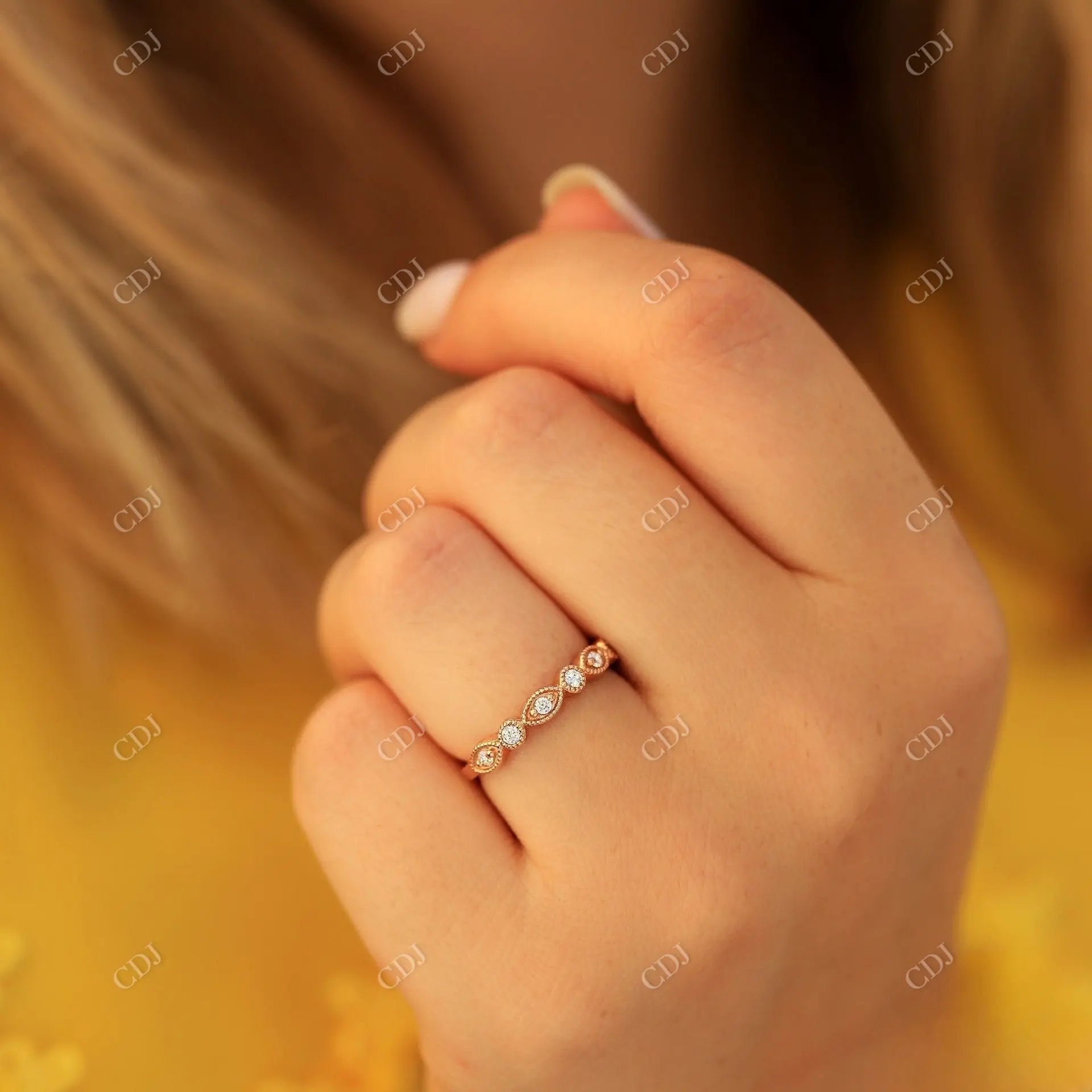 Art Deco Round Cut Moissanite Rose Gold Wedding Band