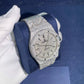 Every inch of this watch is meticulously covered in sparkling diamonds, from the bezel to the bracelet links. The fully iced-out design showcases expert craftsmanship, ensuring the diamonds are securely set to create a continuous, radiant surface that captures light brilliantly.