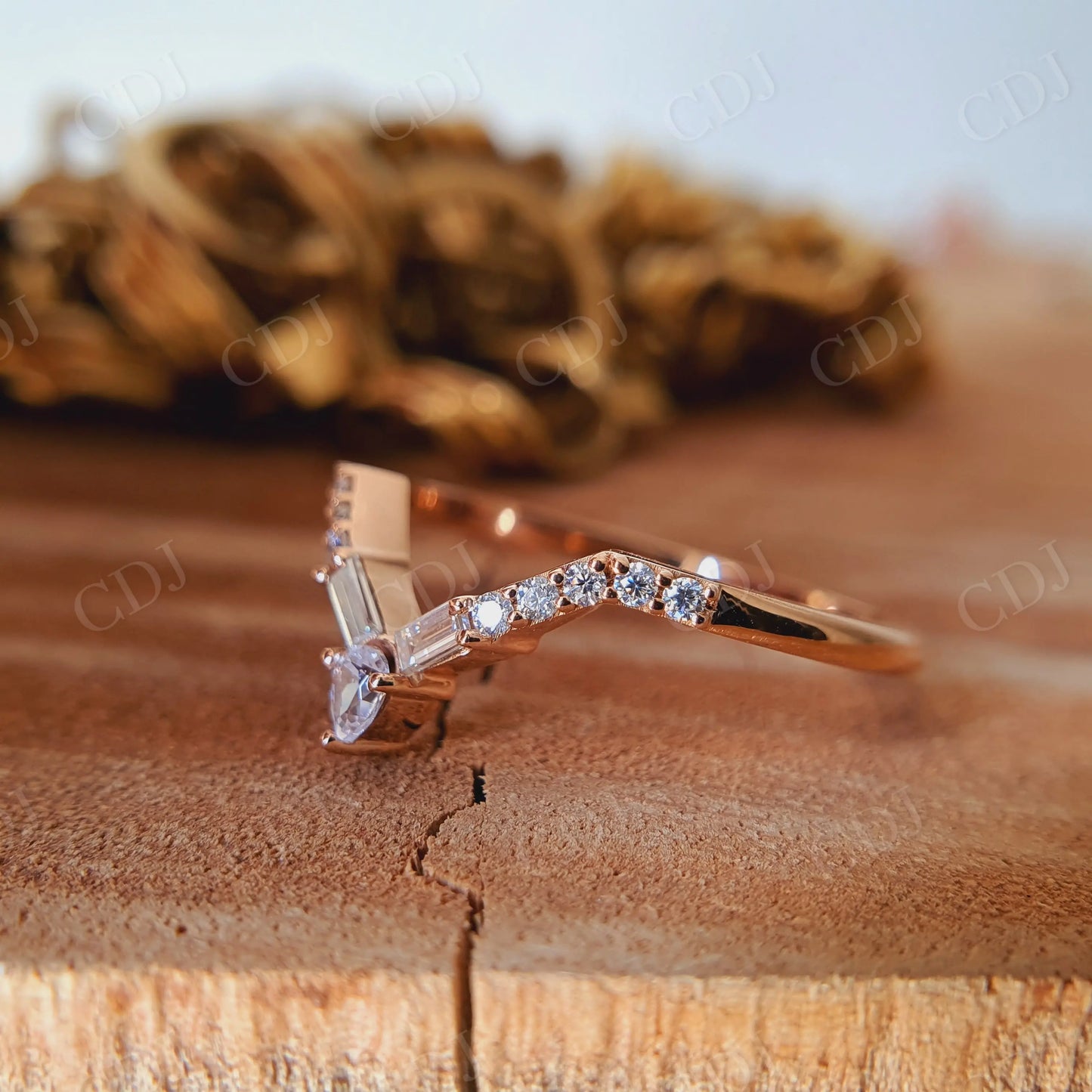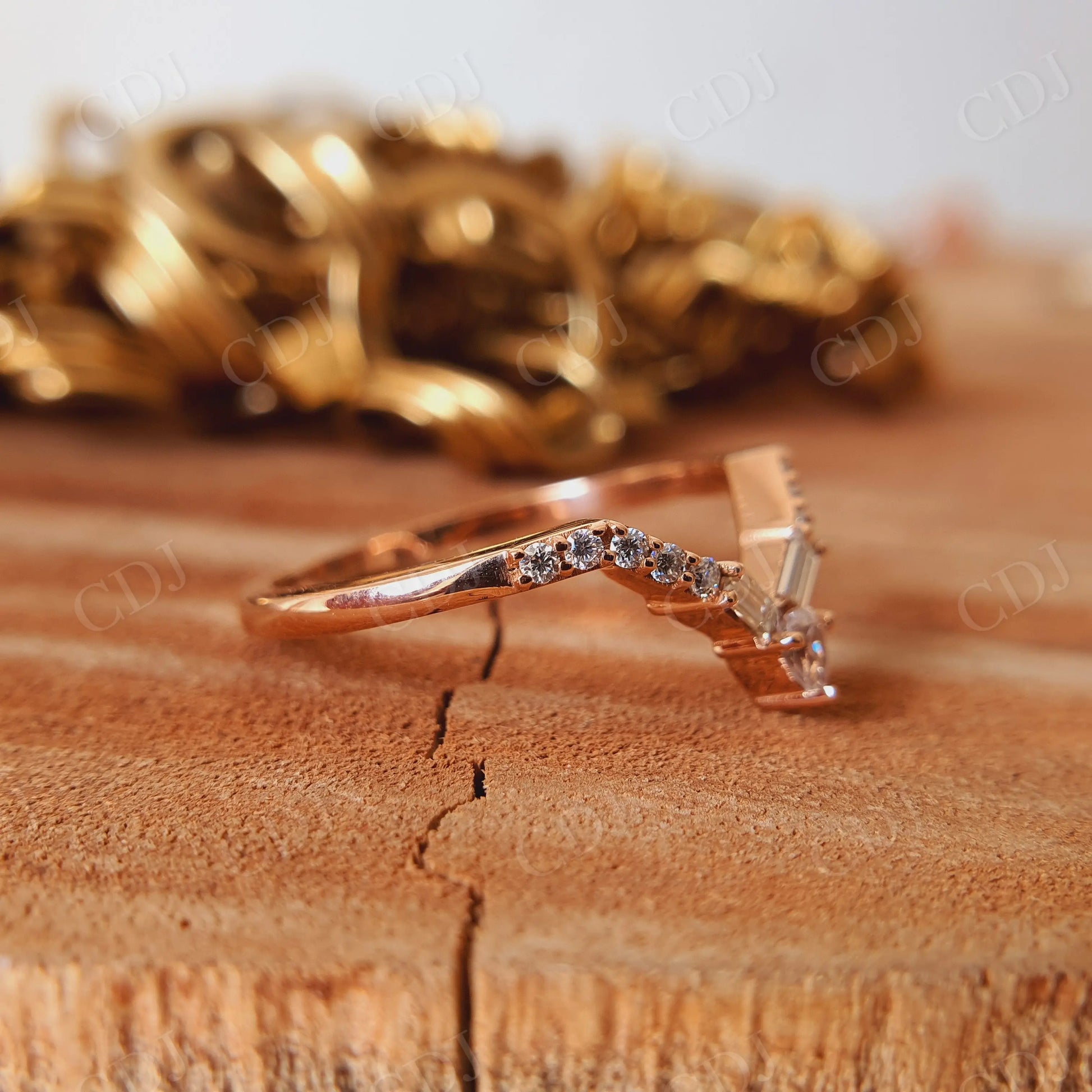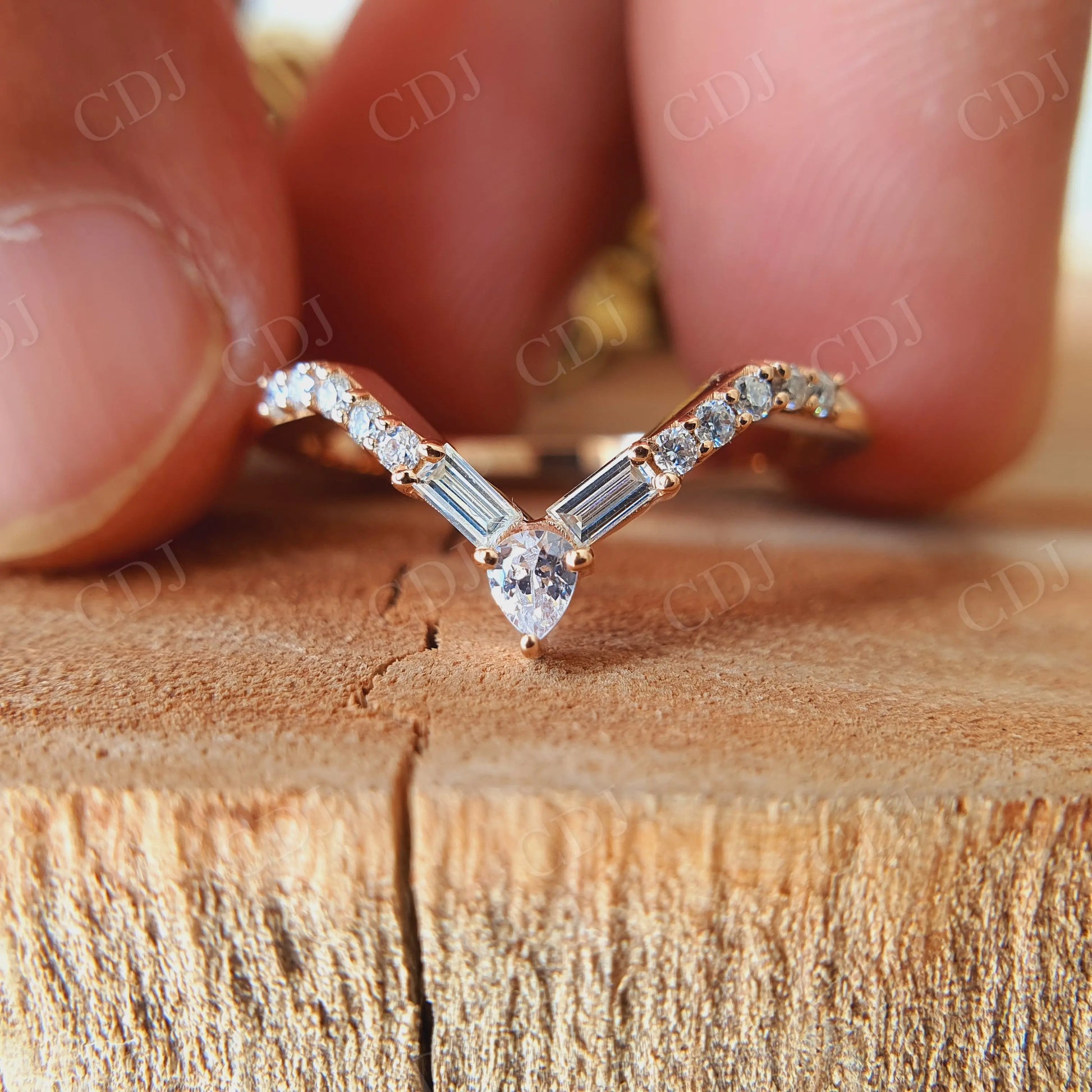 Tags: Baguette CutMoissaniteV ShapedWedding Band