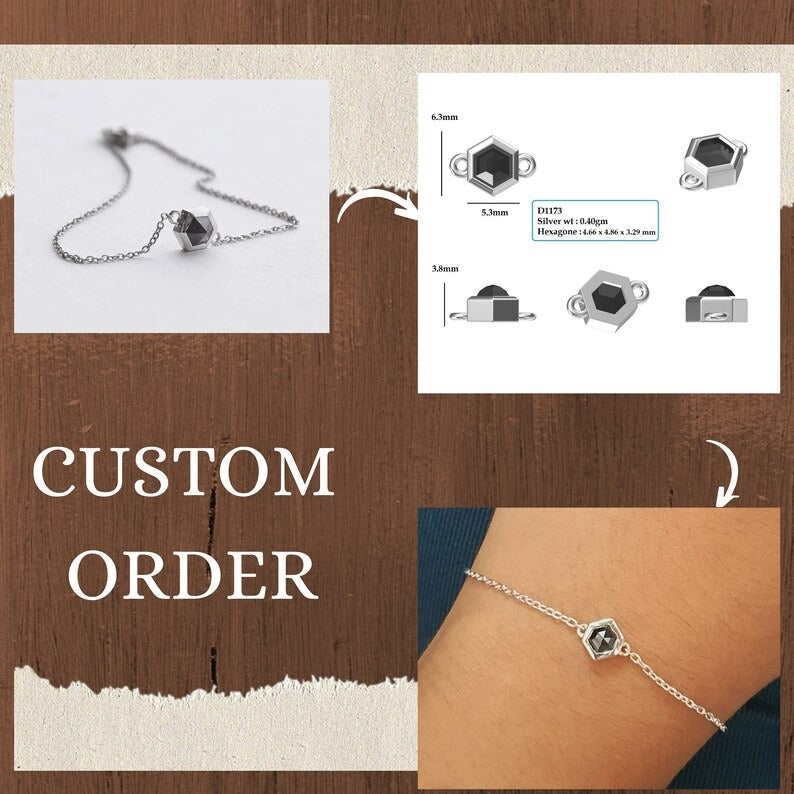 The Bezel Set Salt and Pepper Moissanite Hexagon Solitaire Bracelet is more than just jewelry—it’s a statement of individuality and sustainable beauty, designed to shine with every movement.