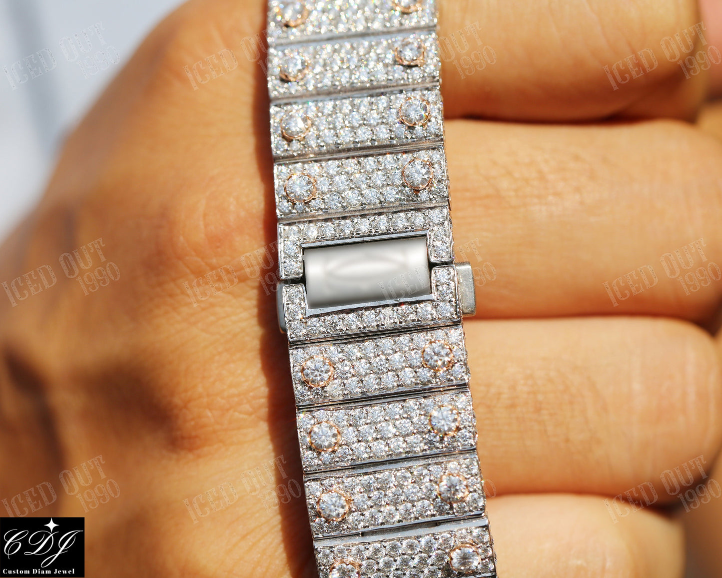 Encrusted with high-quality VVS moissanite or natural diamonds on the bezel and bracelet, delivering that signature iced-out shine 🌟