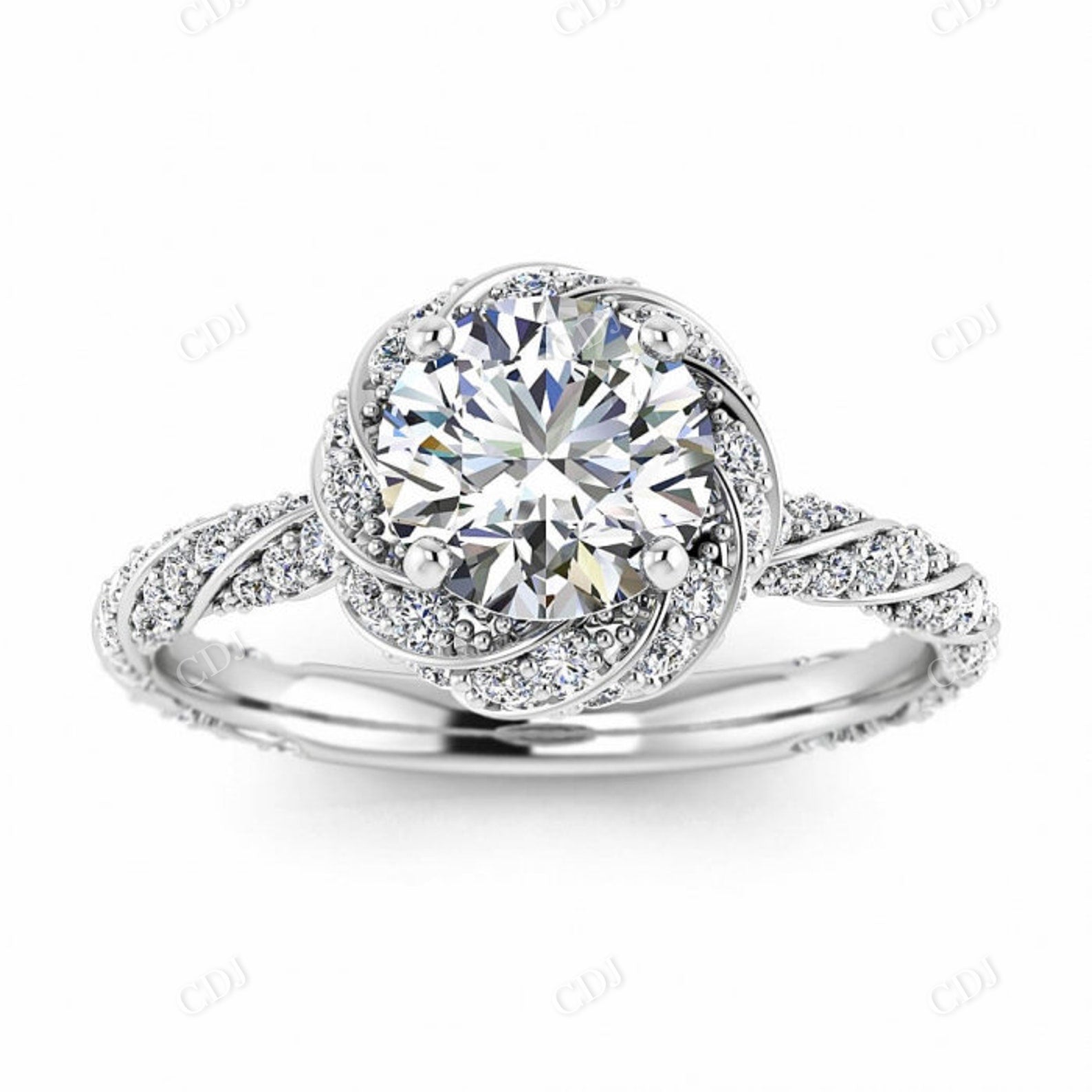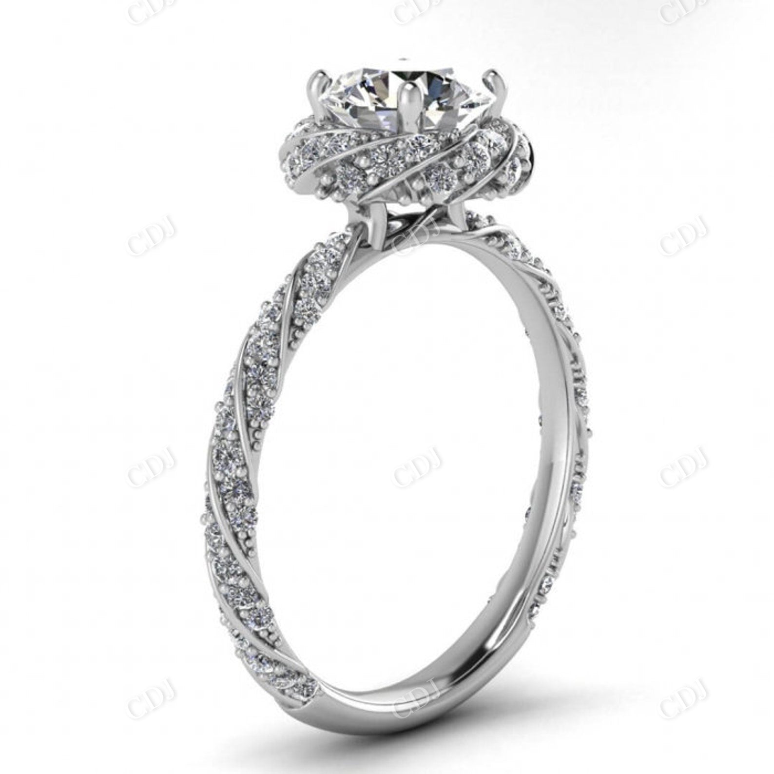 Classy Twisted Halo And Eternity Round Moissanite Engagement Ring